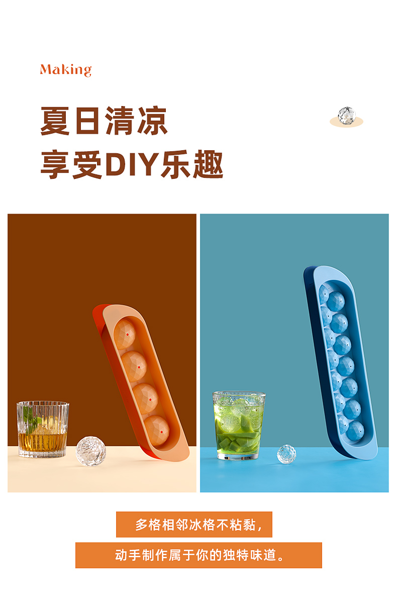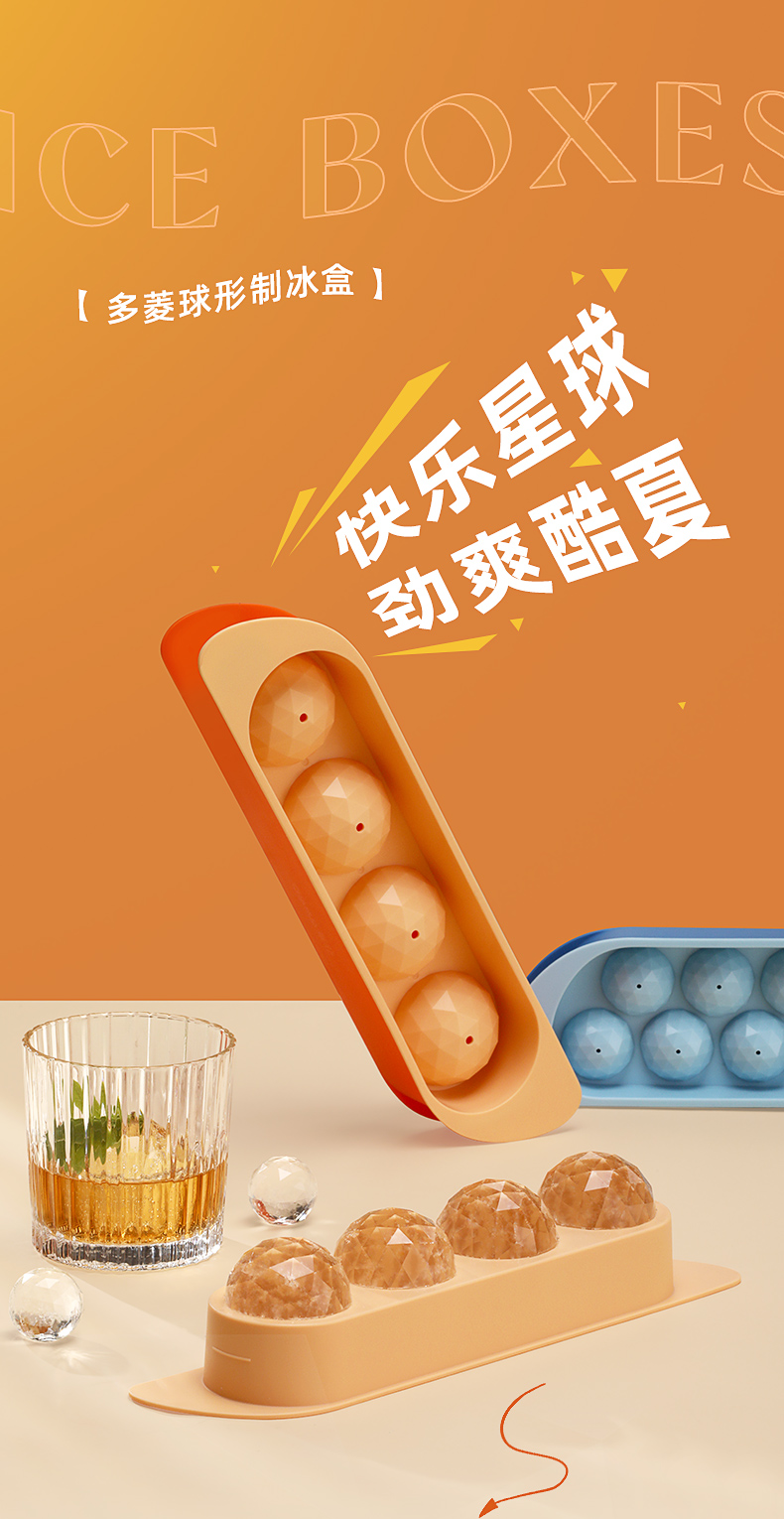 茶花(CHAHUA) 多菱球形制冰盒-14格 011005 31*7.4*4cm 宝石蓝(单位:个)