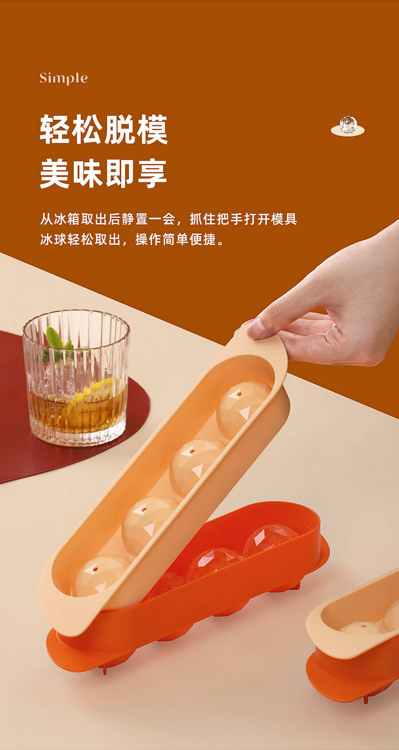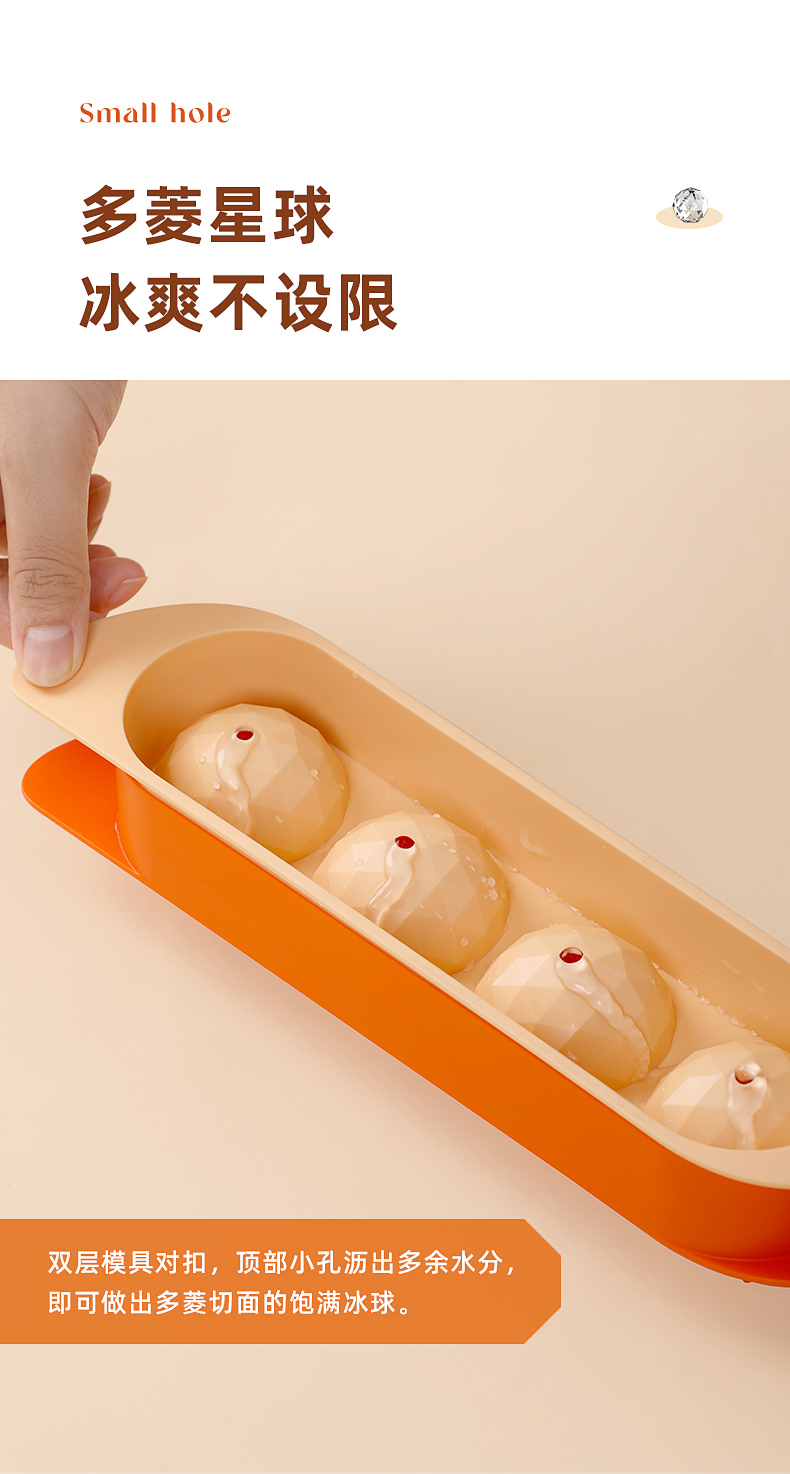 茶花(CHAHUA) 多菱球形制冰盒-4格 011006 27.8*6.6*5.8cm 橙色(单位:个)