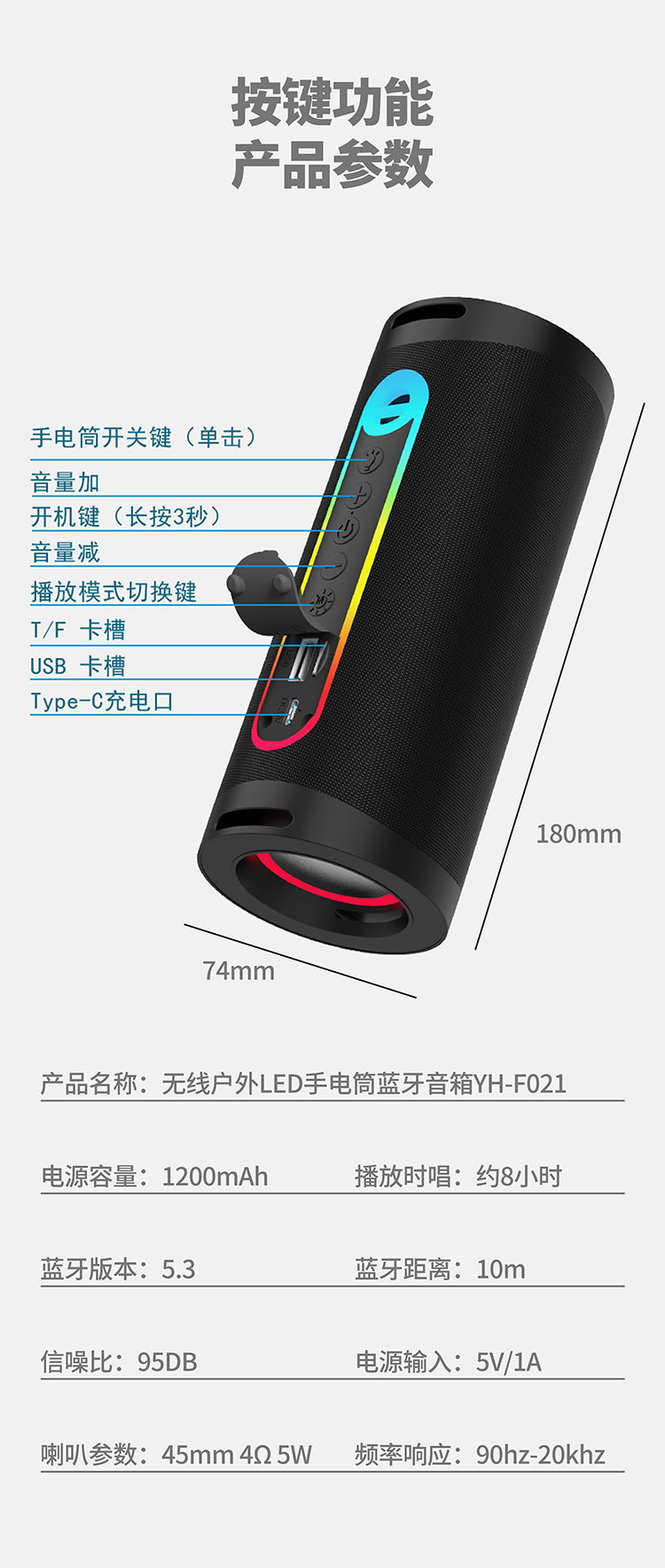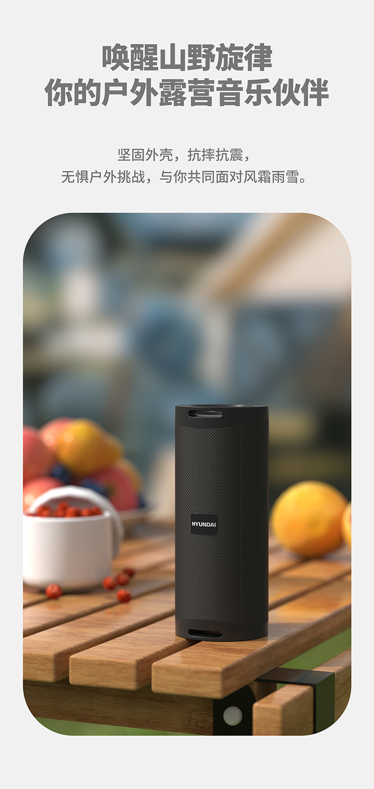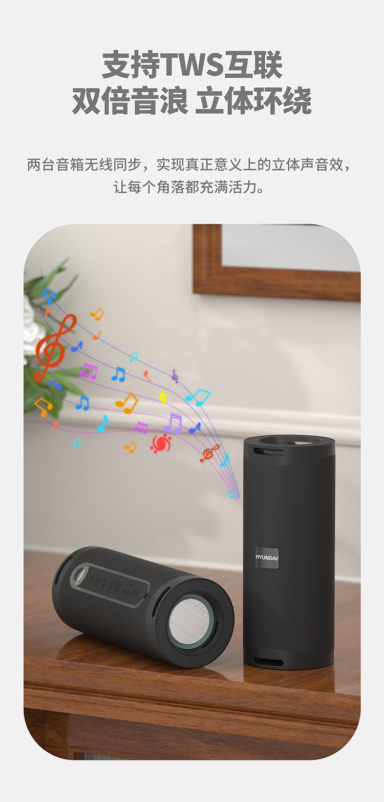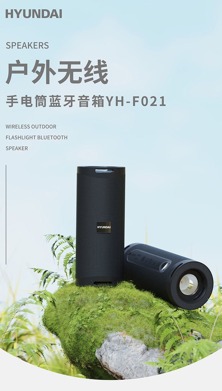 现代(HYUNDAI) 户外便携式蓝牙音箱 YH-F021 1200mAh 黑色(单位:个)
