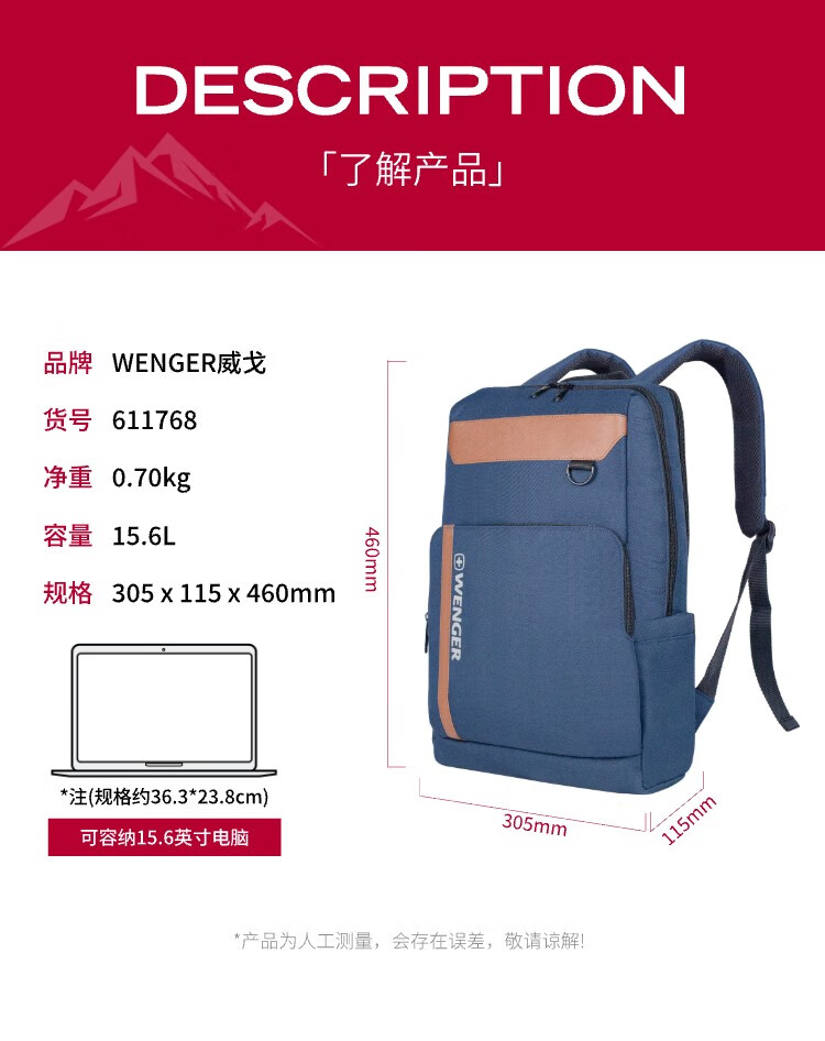 威戈(WENGER) 双肩包 611768 15.6寸 藏青色(单位:个)