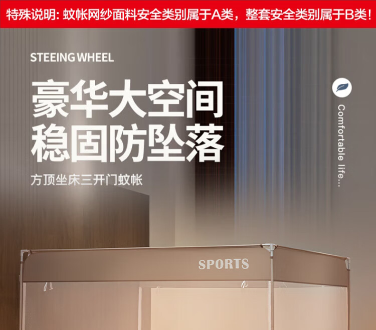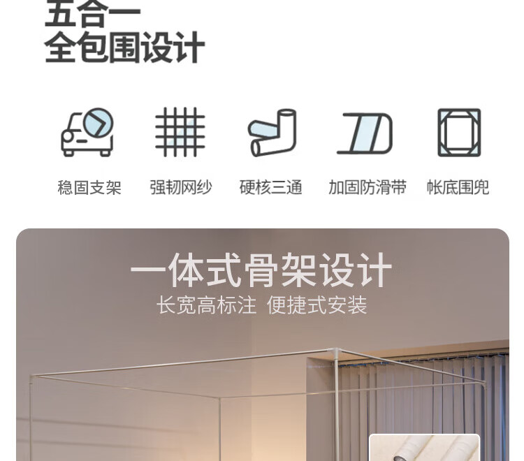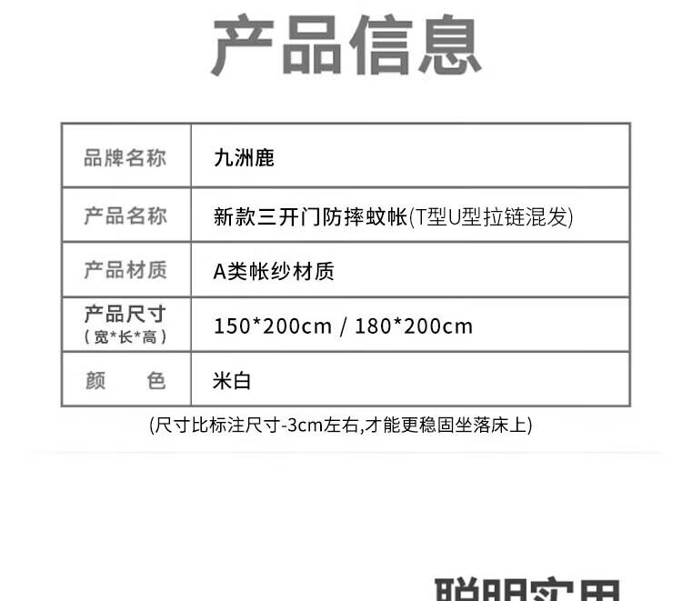 九洲鹿 坐床蚊帐全底U型 JWZ144 180*200cm 米白(单位:顶)