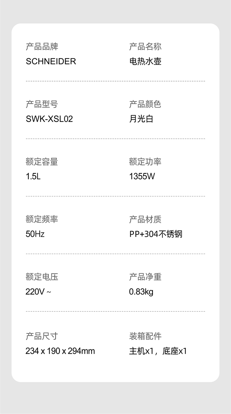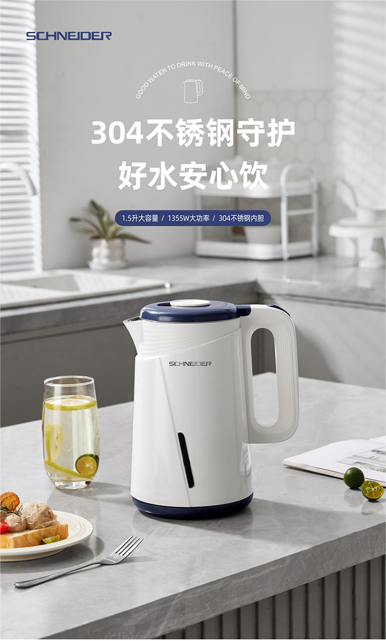 施耐德(SCHNEIDER) 电热水壶 SWK-XSL02 1.5L 白色(单位:台)