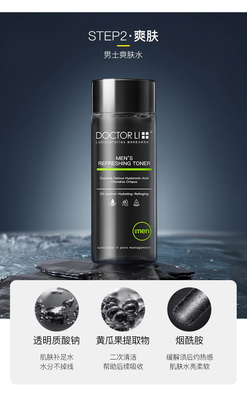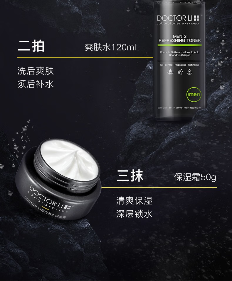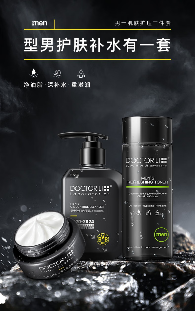 李医生(DOCTOR LI) 男士控油补水保湿三件套 LYS-037 面霜50g+控油洗面奶150g+爽肤水200m 黑色(单位:套)