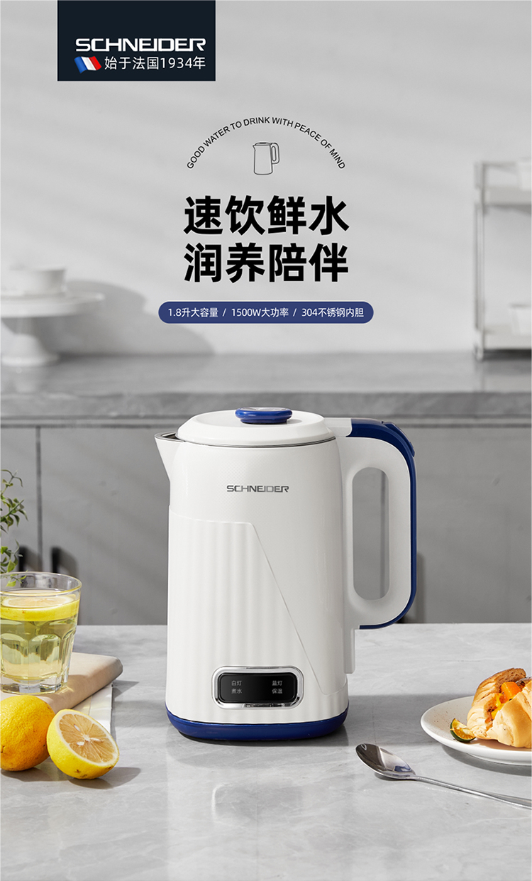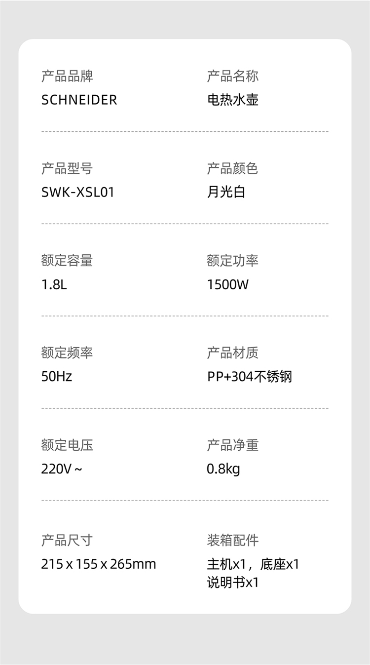 施耐德(SCHNEIDER) 电热水壶 SWK-XSL01 1.8L 白色(单位:台)