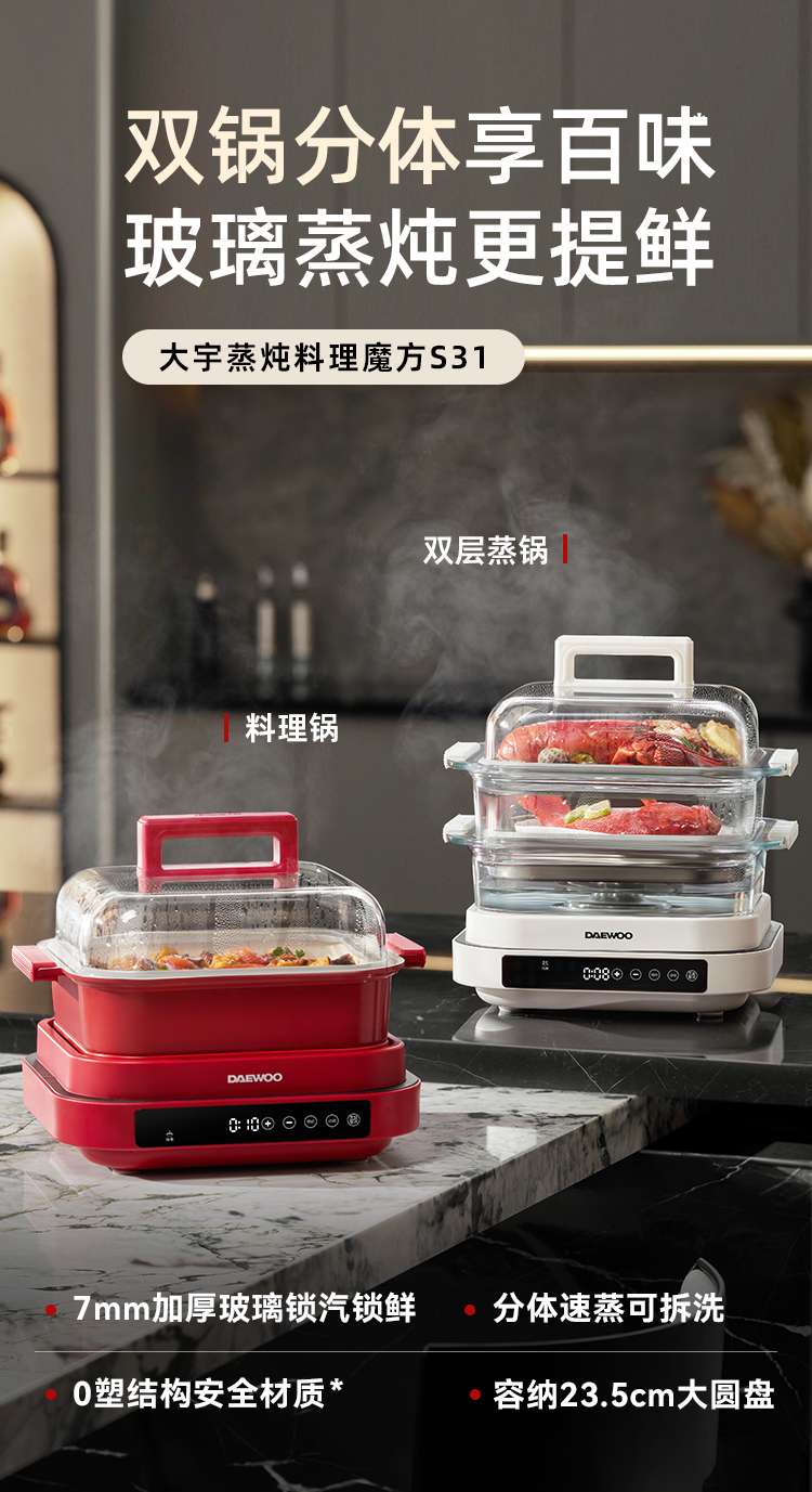 大宇(DAEWOO) 多功能蒸炖料理锅 S31 1800W 红色(单位:台)