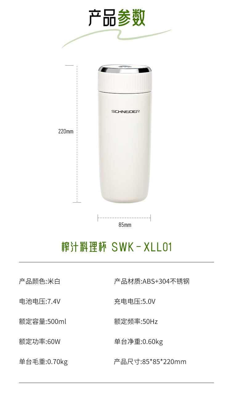 施耐德(SCHNEIDER) 榨汁料理杯 SWK-XLL01 500ml 米白(单位:台)