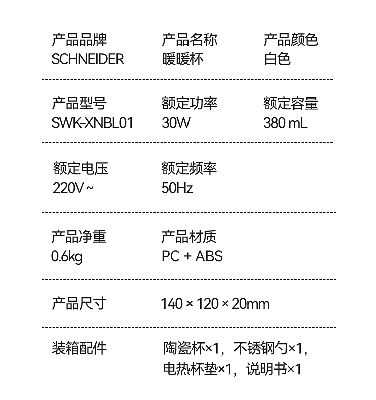 施耐德(SCHNEIDER) 暖暖杯 SWK-XNBL01 380ml 暖白(单位:台)