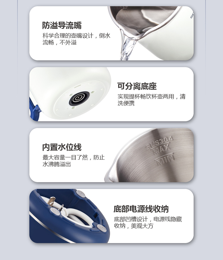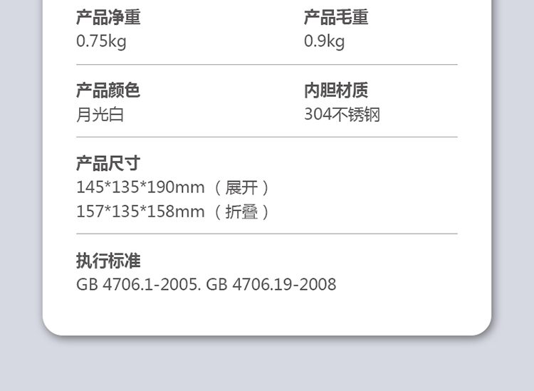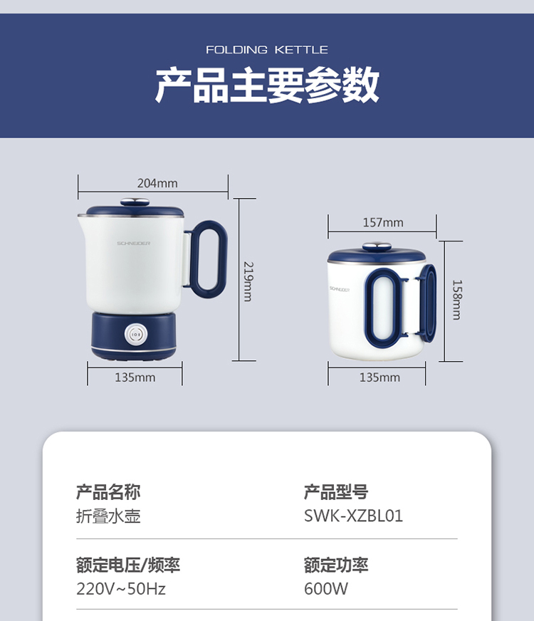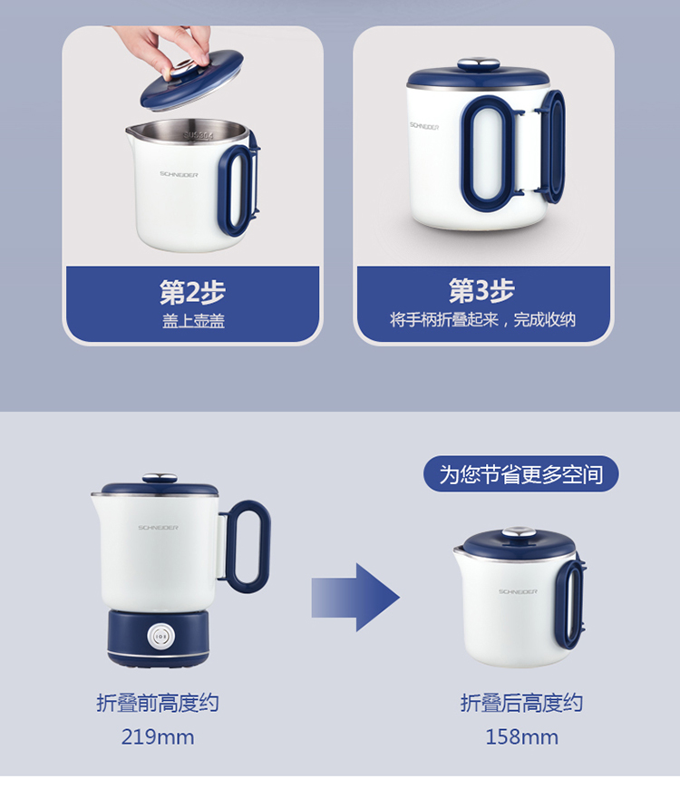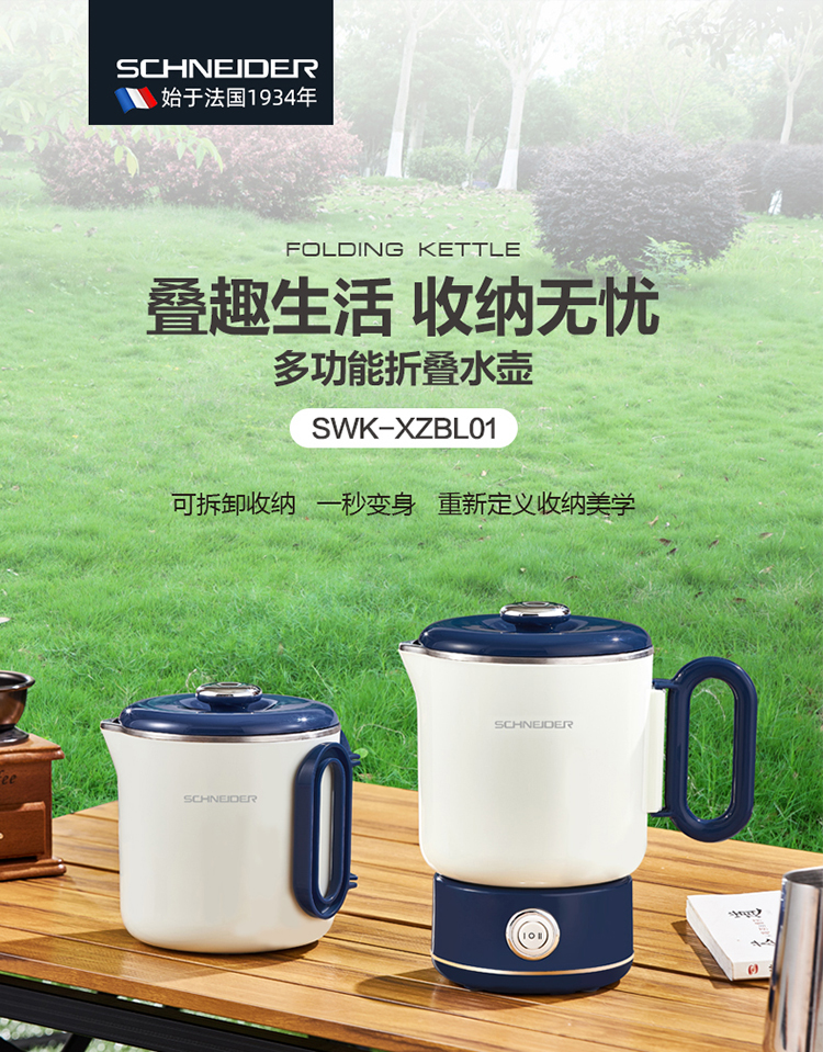 施耐德(SCHNEIDER) 折叠电水壶 SWK-XZBL01 1L 米白(单位:台)