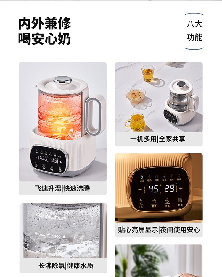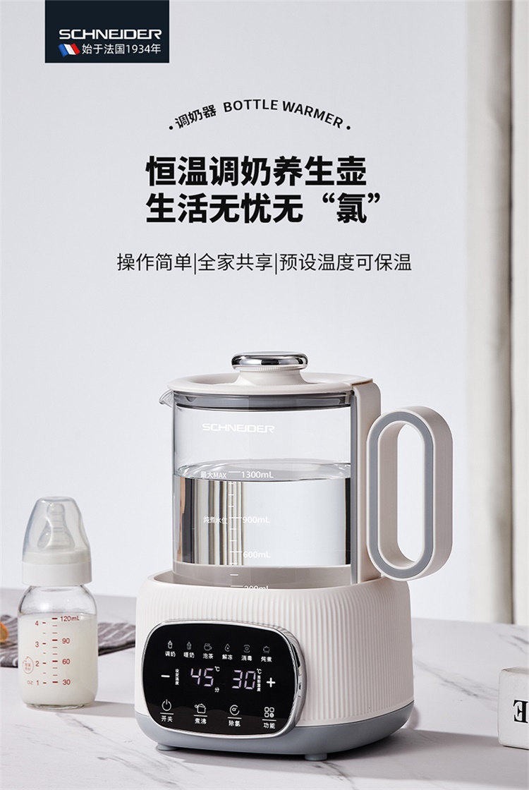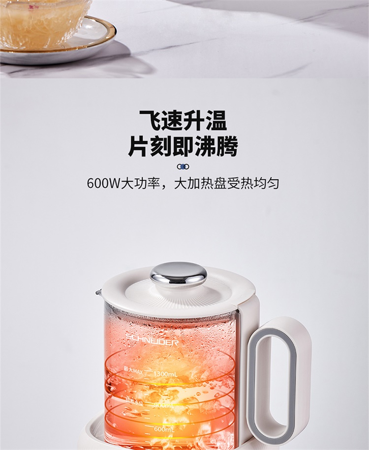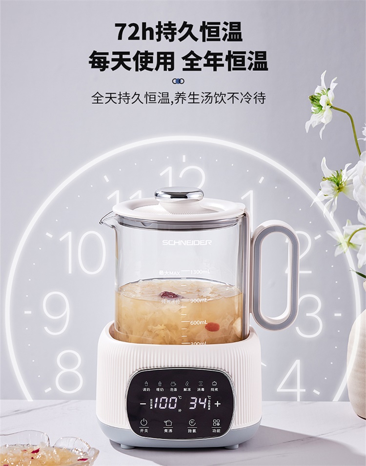 施耐德(SCHNEIDER) 恒温养生壶 SWK-XHSL01 1.3L 月光白(单位:台)