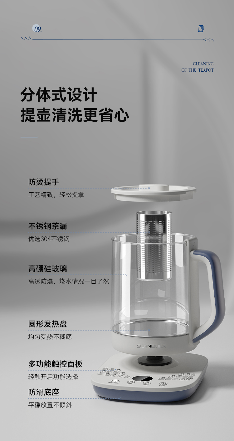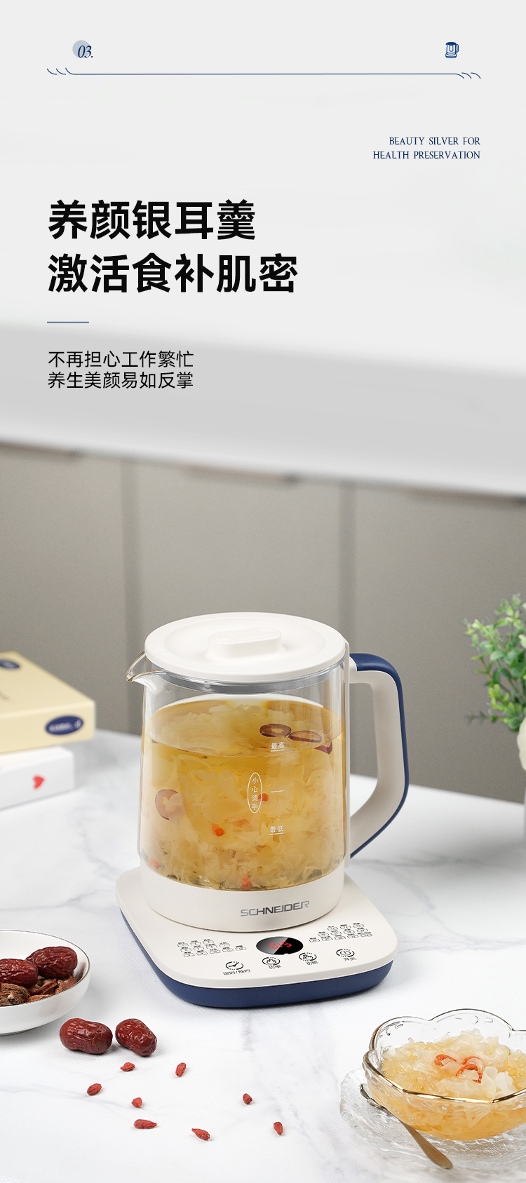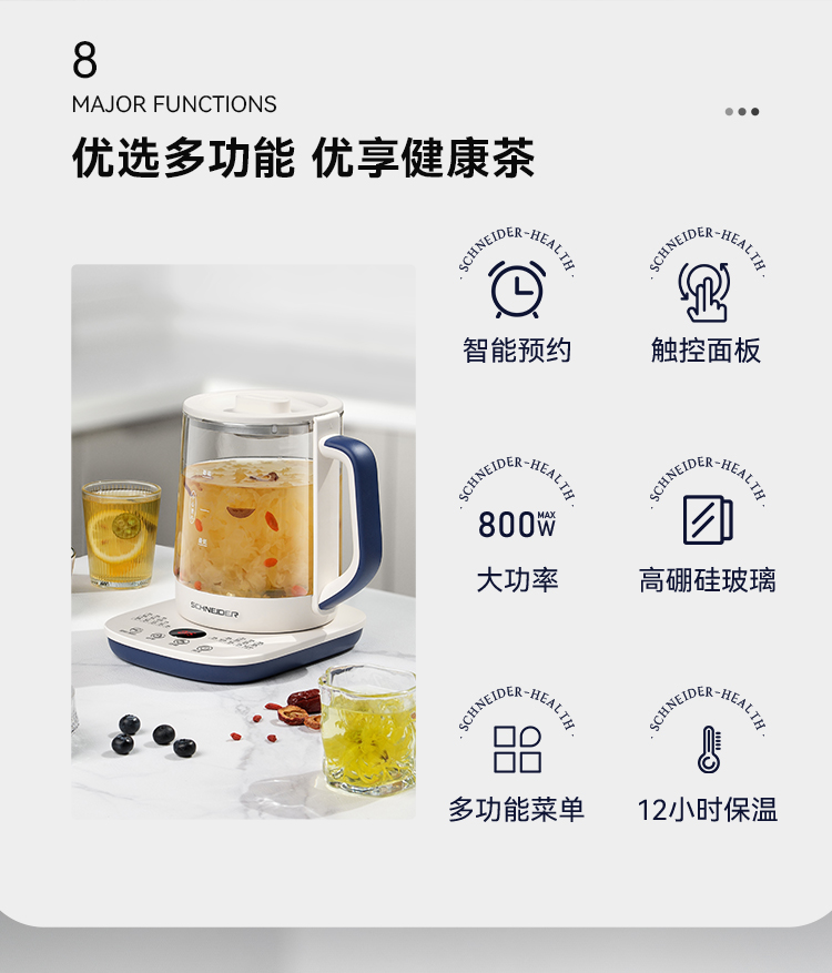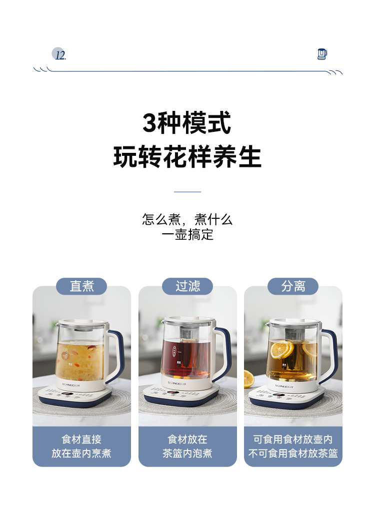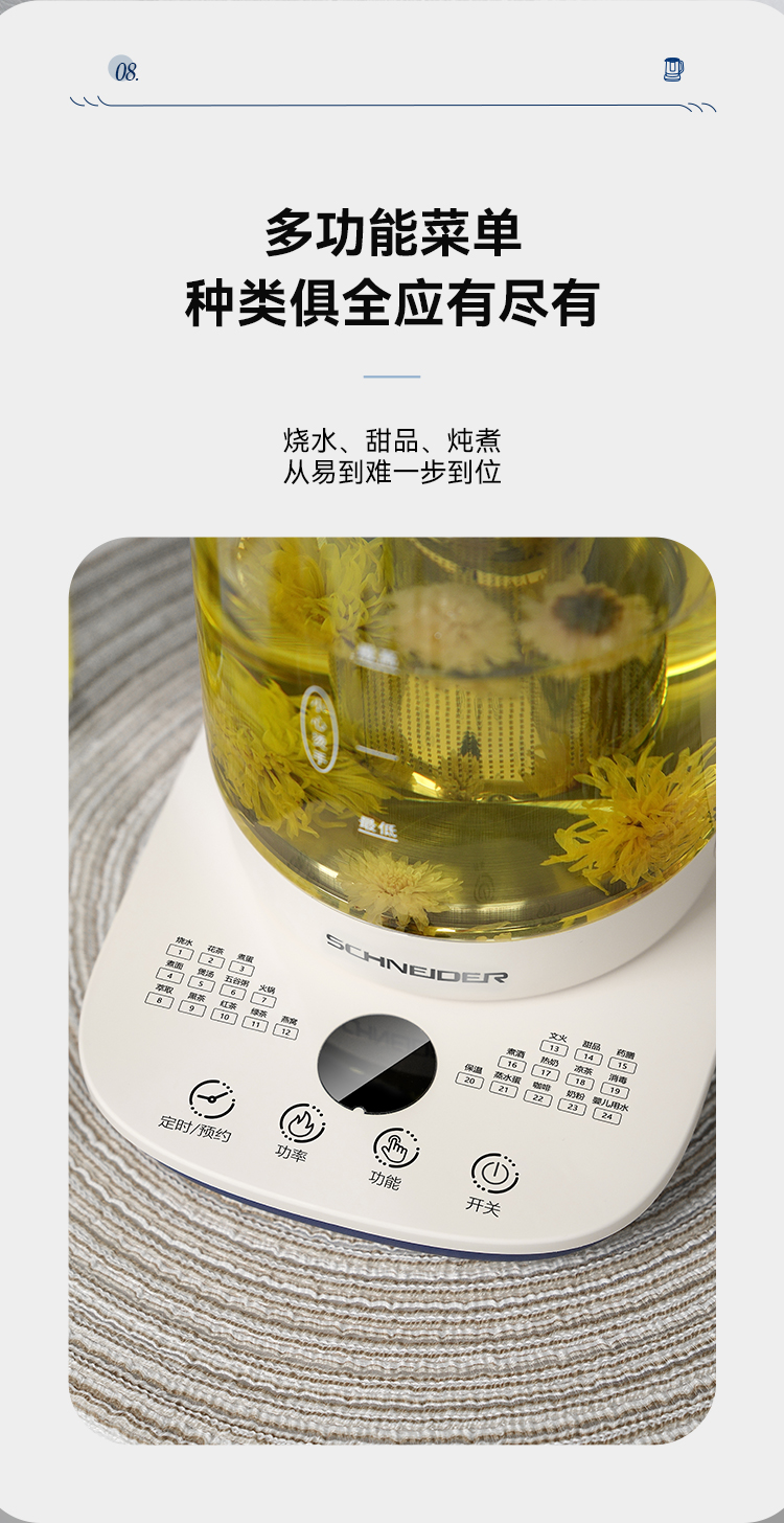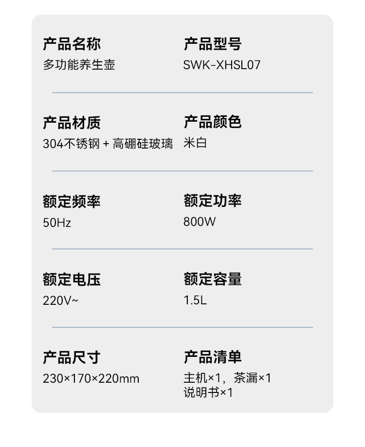 施耐德(SCHNEIDER) 多功能养生壶 SWK-XHSL07 1.5L 米白(单位:台)