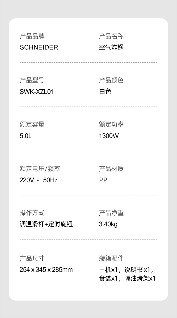 施耐德(SCHNEIDER) 空气炸锅 SWK-XZL01 5L 暖白(单位:台)