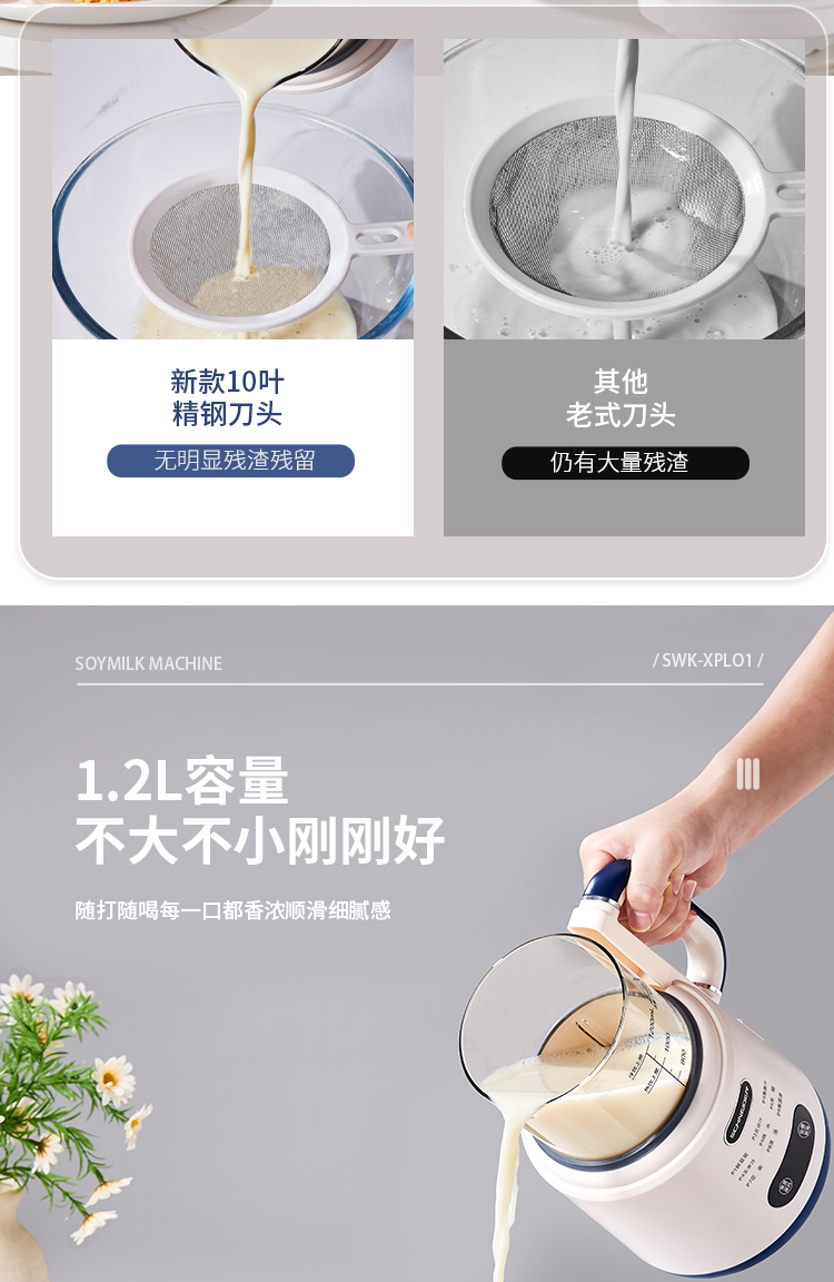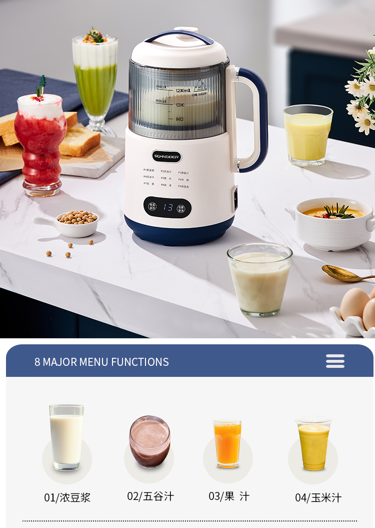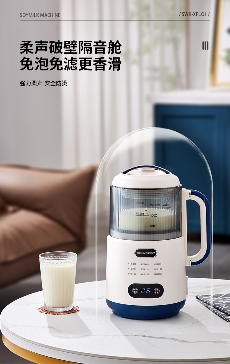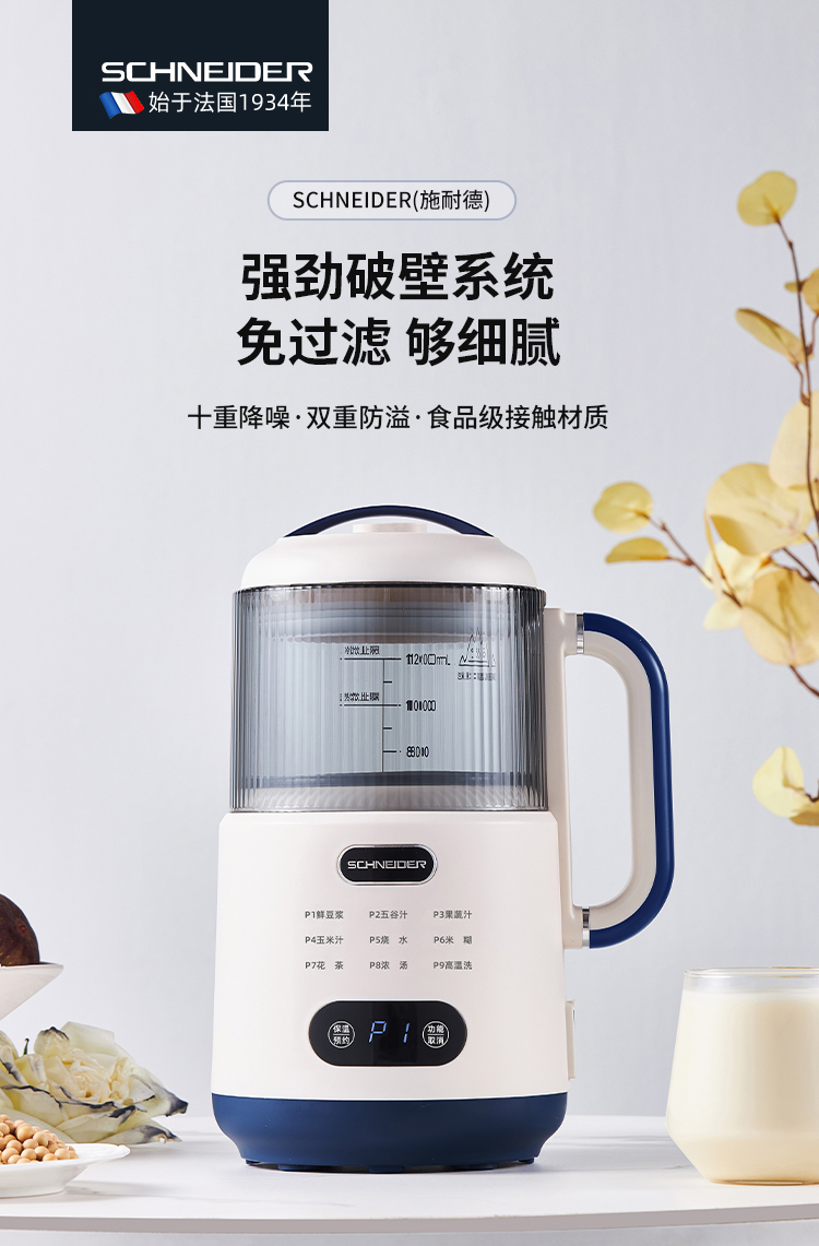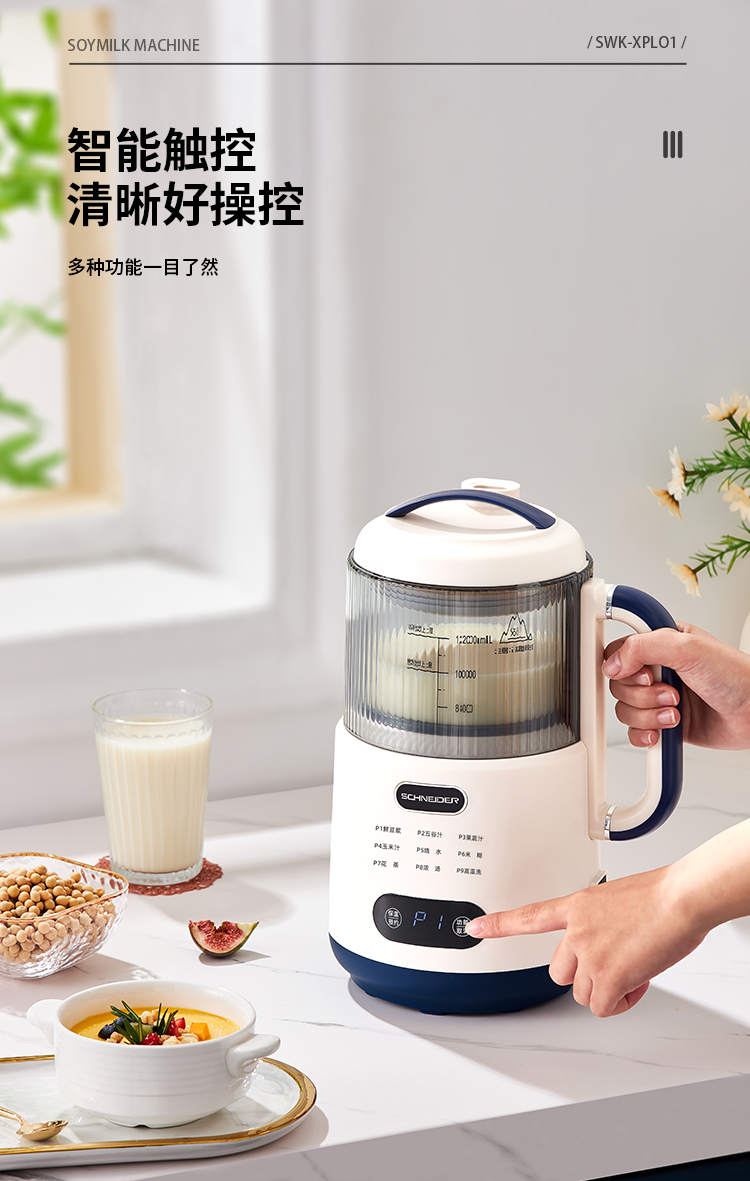 施耐德(SCHNEIDER) 多功能豆浆机 SWK-XPL01 1.2L 月光白(单位:台)