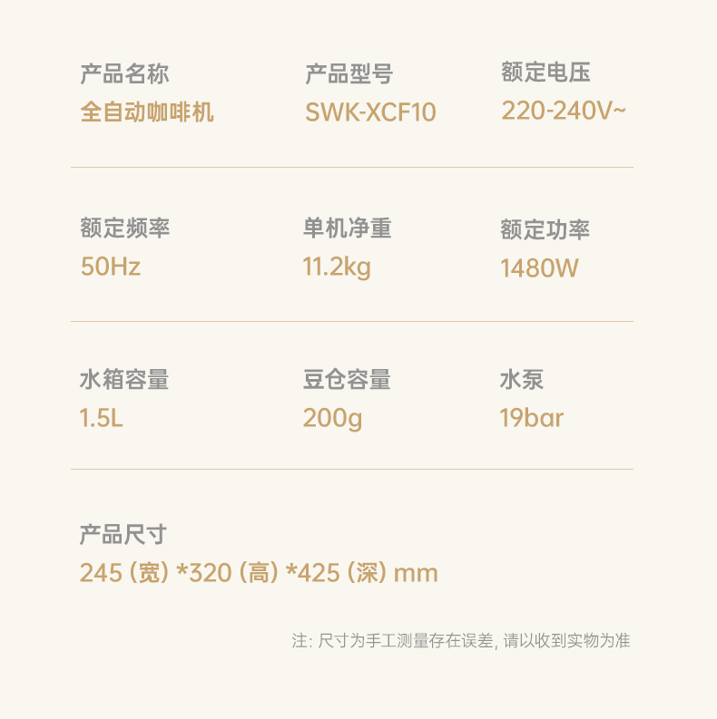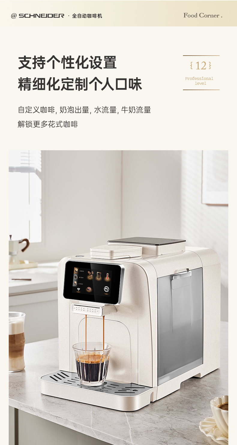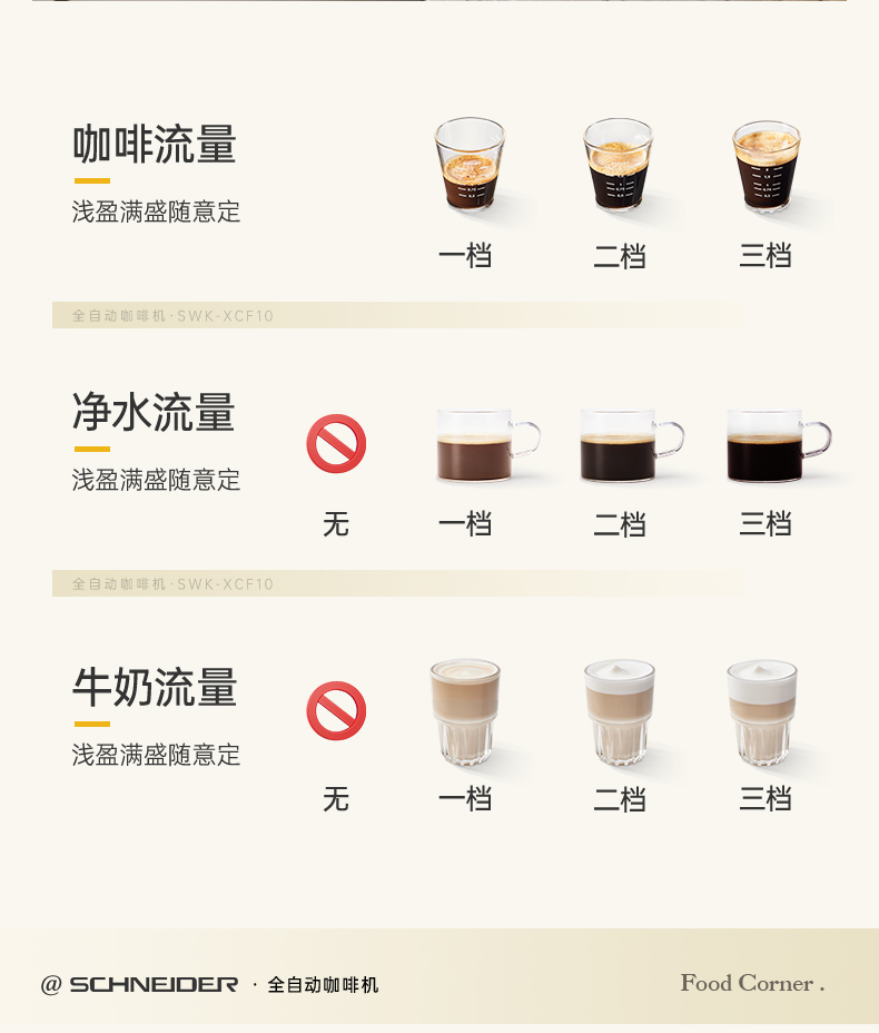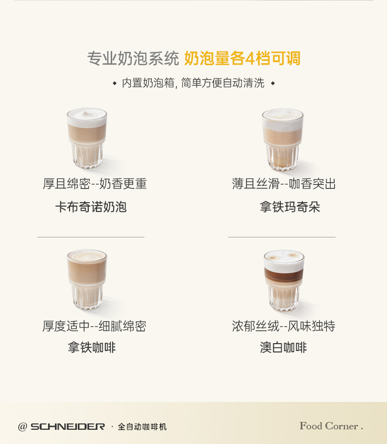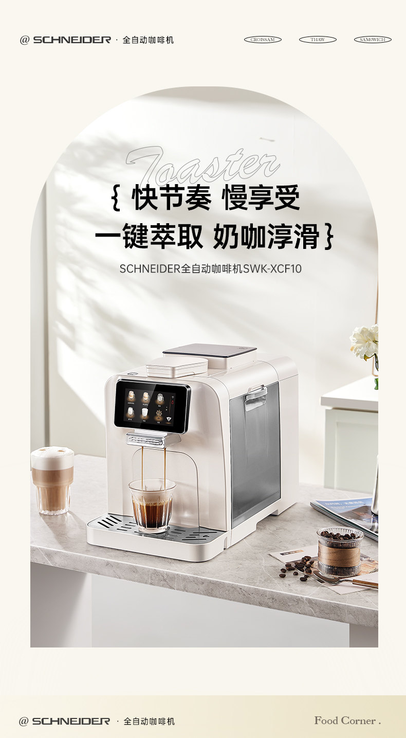 施耐德(SCHNEIDER) 全自动咖啡机 SWK-XCF10 水箱容量:1.5L 奶箱容量:400ml 奶白色(单位:台)