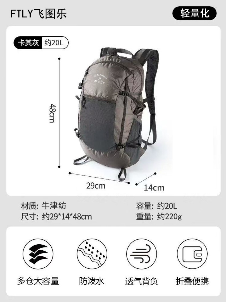 飞图乐(FTLY) 轻量化徒步背包 TBB0100 48*29*14cm 卡其(单位:个)