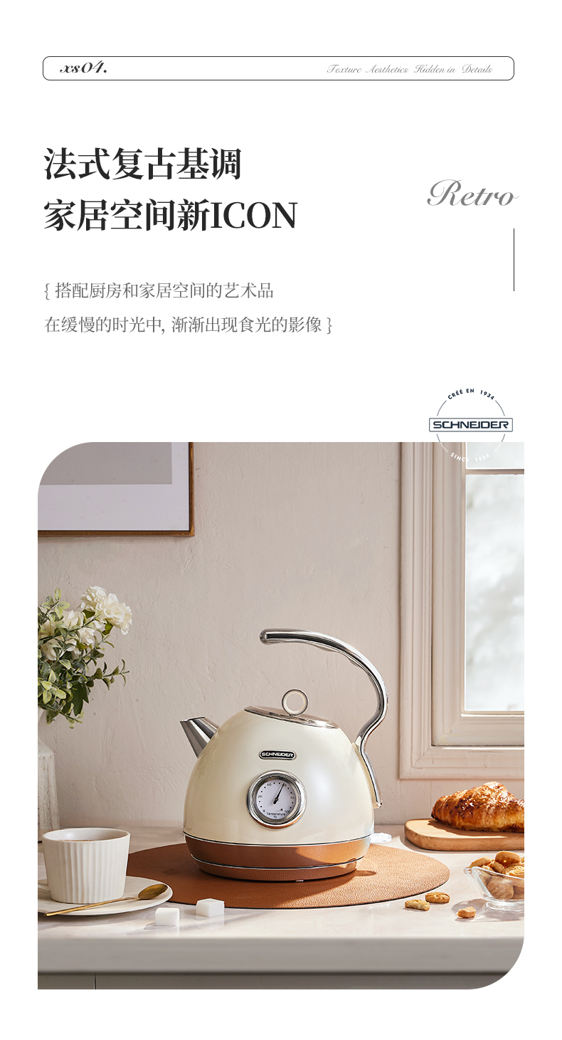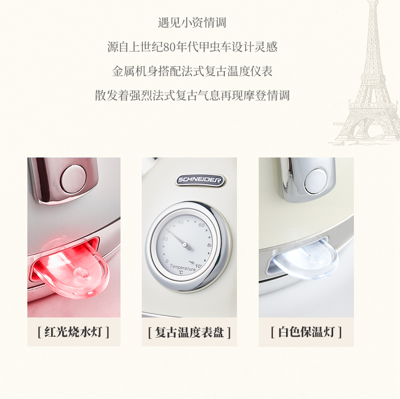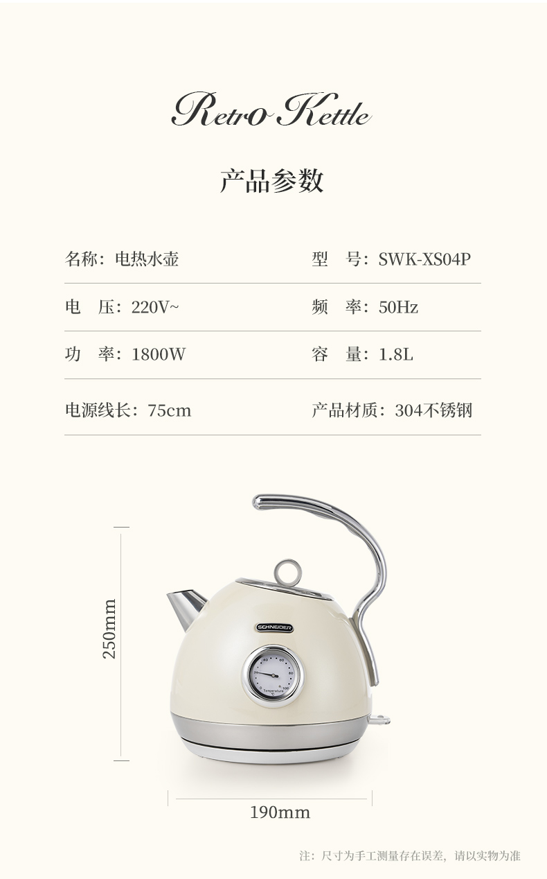 施耐德(SCHNEIDER) 电热水壶 SWK-XS04P 1.8L 奶白色(单位:台)