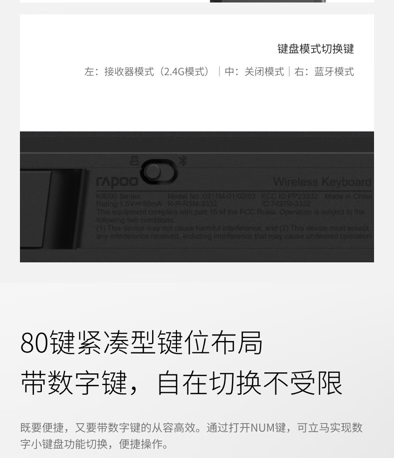 雷柏 无线键鼠套装 8000GT 2件套 黑色(单位:套)