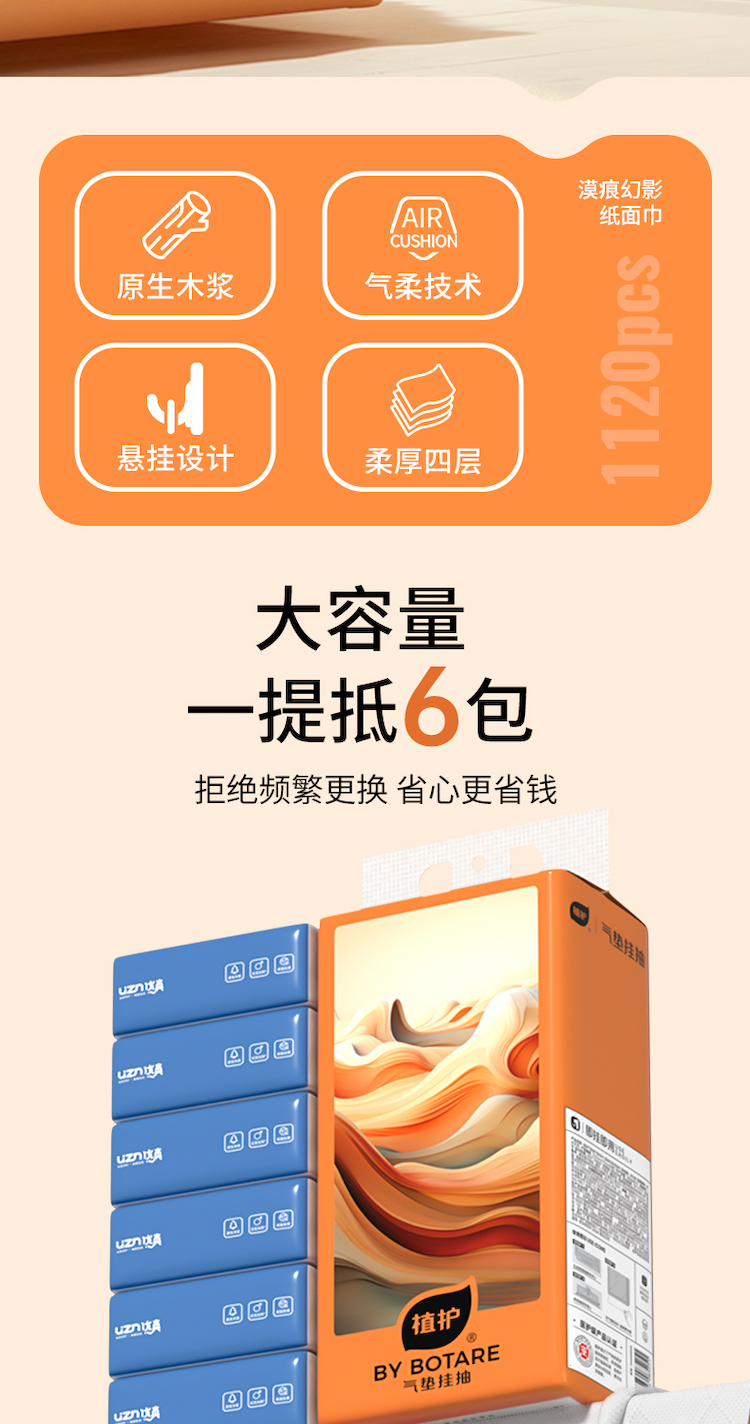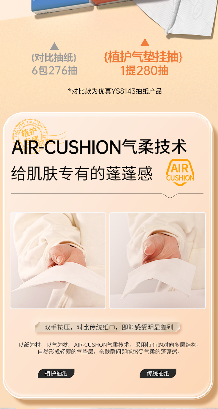 植护 抽纸 漠痕幻影挂抽气垫纸面巾 130*175/4层 280抽 *1提 混色(单位:提)