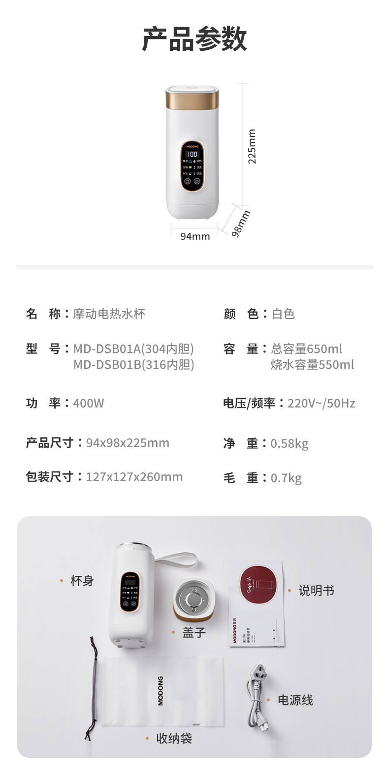 摩动(MODONG) 电热水壶 MD-DSB01A 650ml 白色(单位:台)
