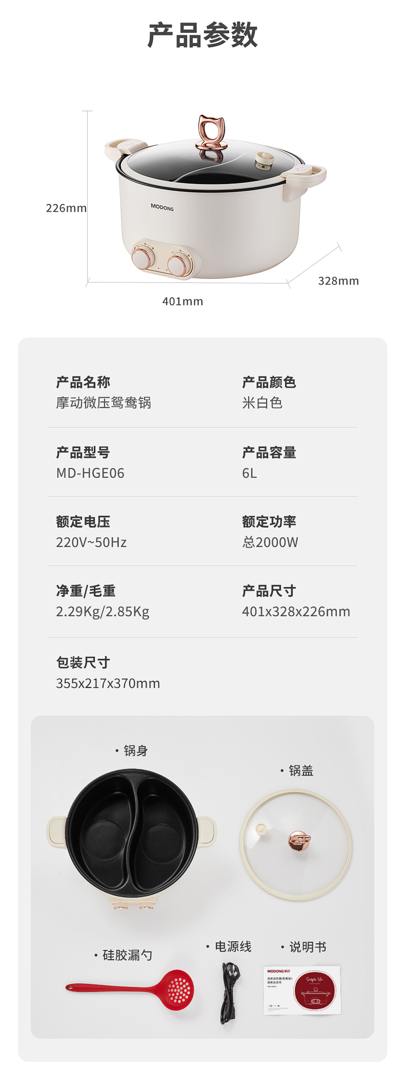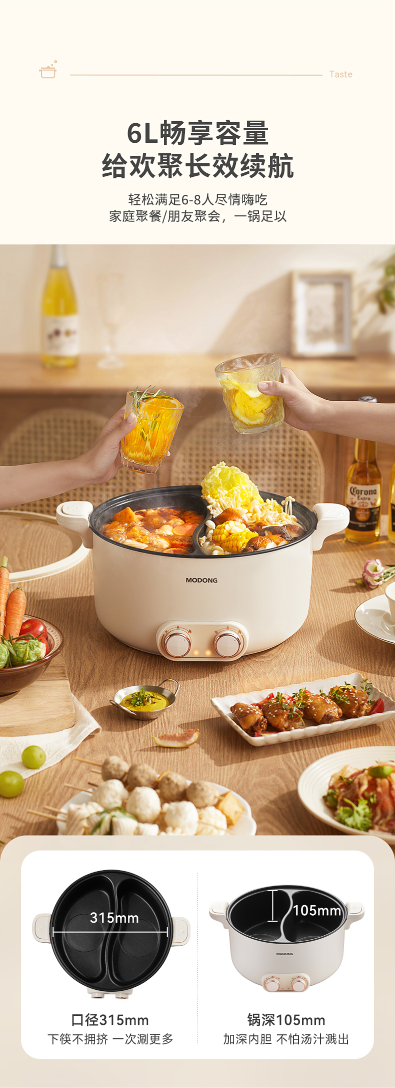 摩动(MODONG) 电火锅 MD-HGE06 6L 米白(单位:台)