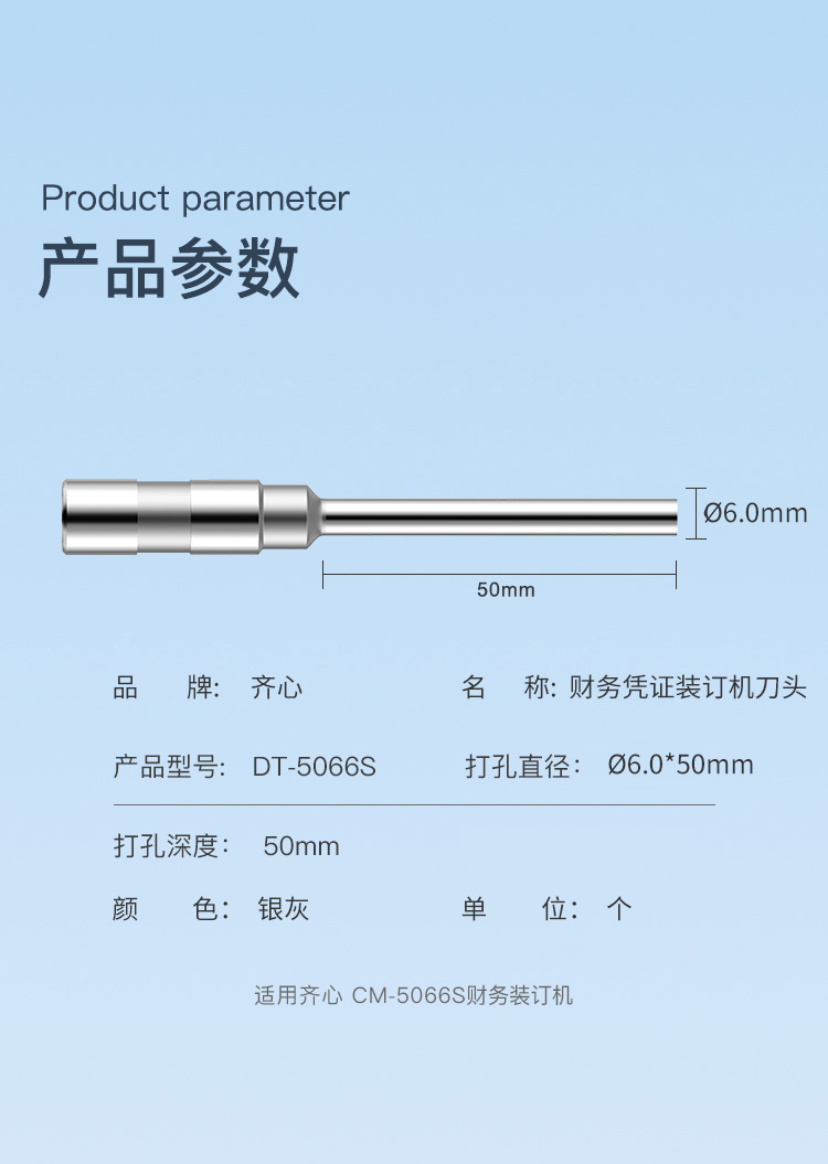 齐心(COMIX) 财务装订机刀头 DT-5066S Ø6.0*50mm 银灰色(单位:个)