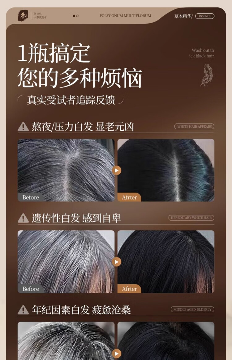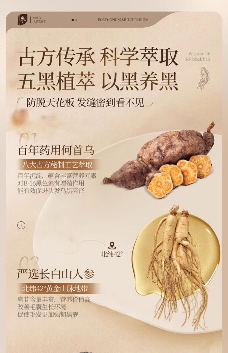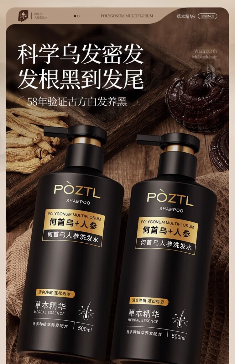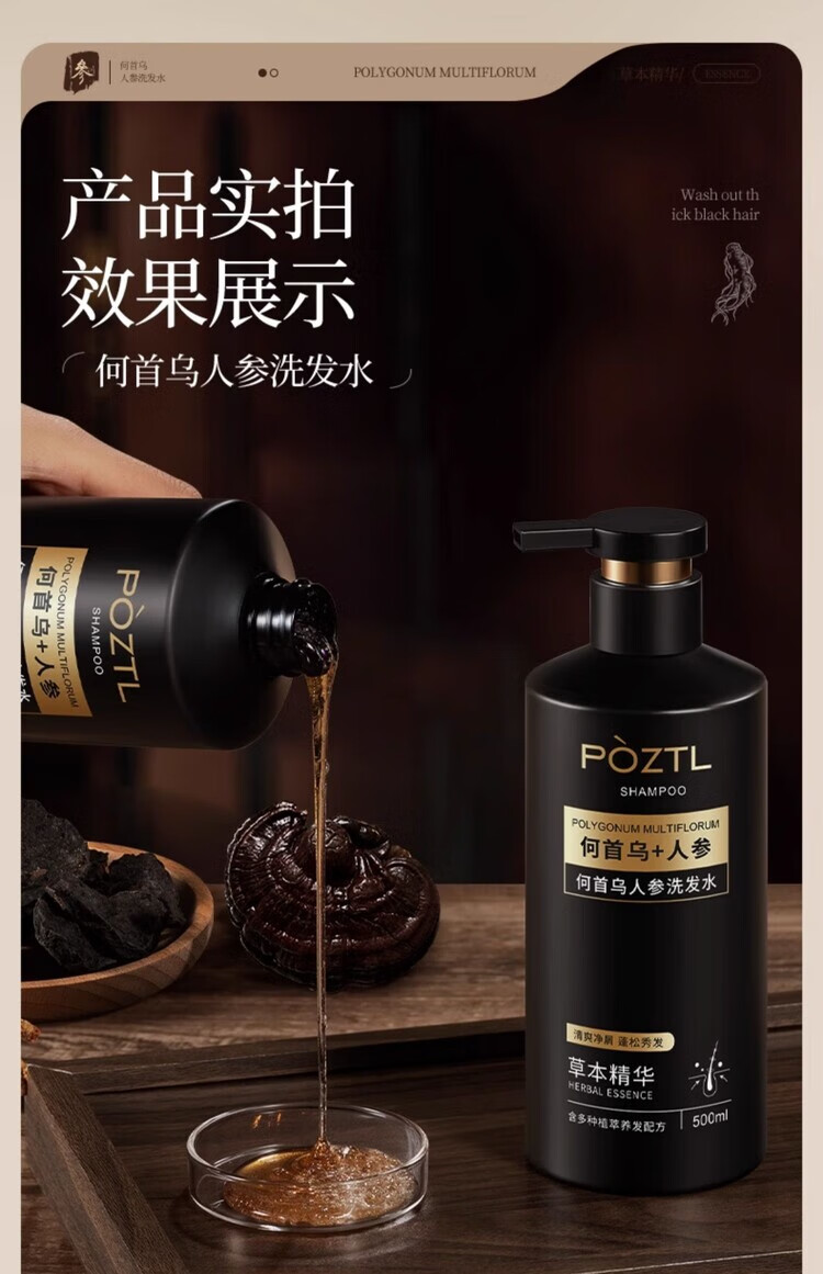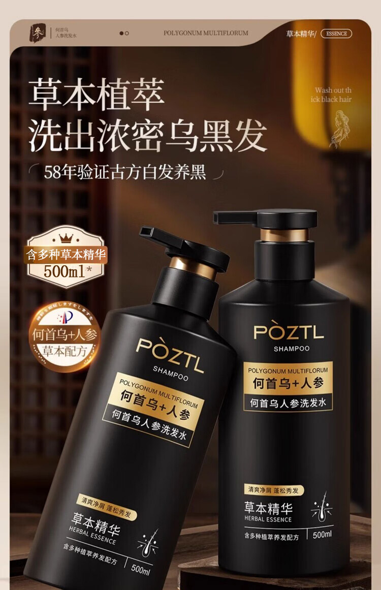 泊紫汀兰(Pozitilan) 人参何首乌 洗发水 1瓶 500ml 黑色(单位:瓶)