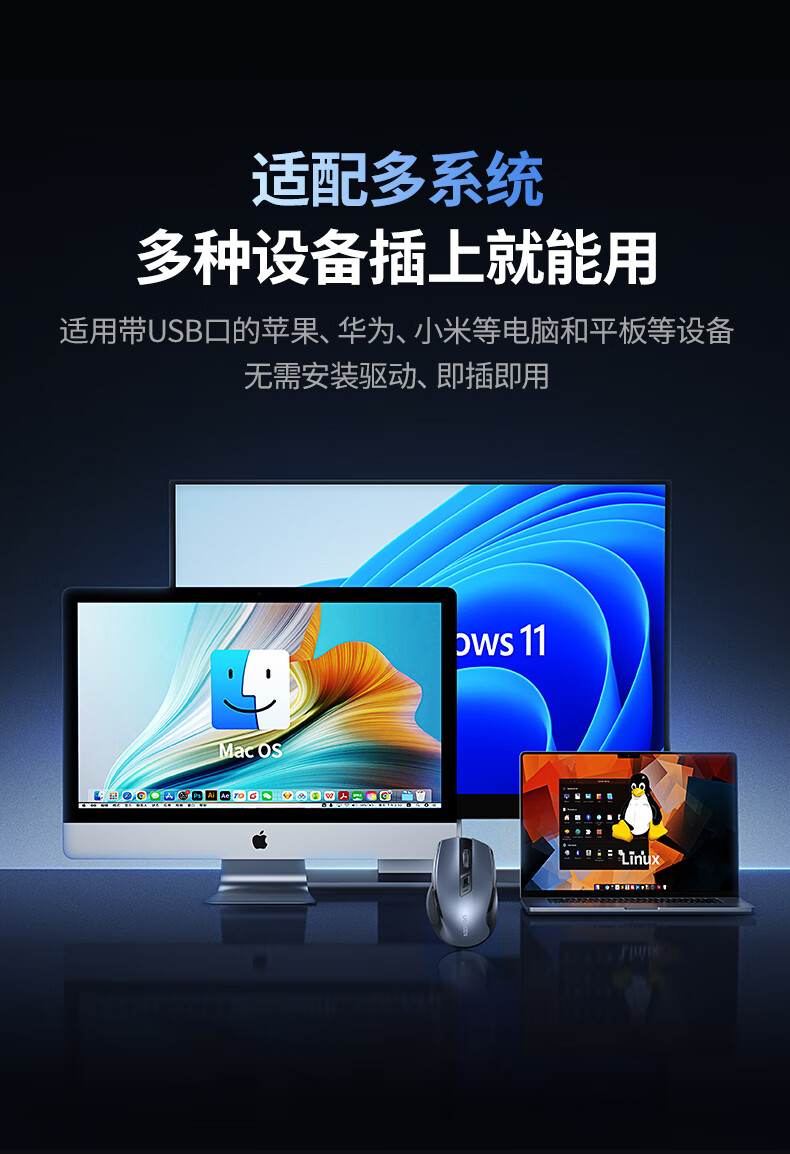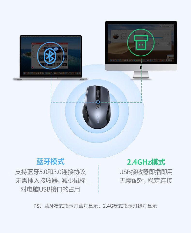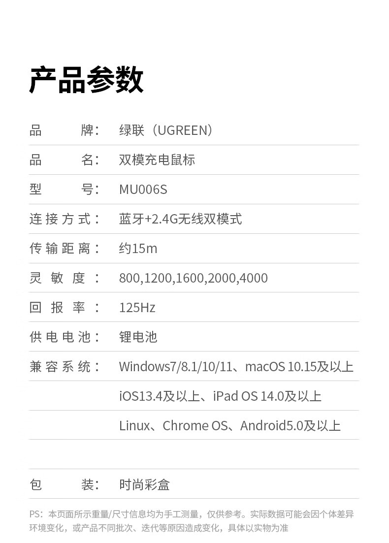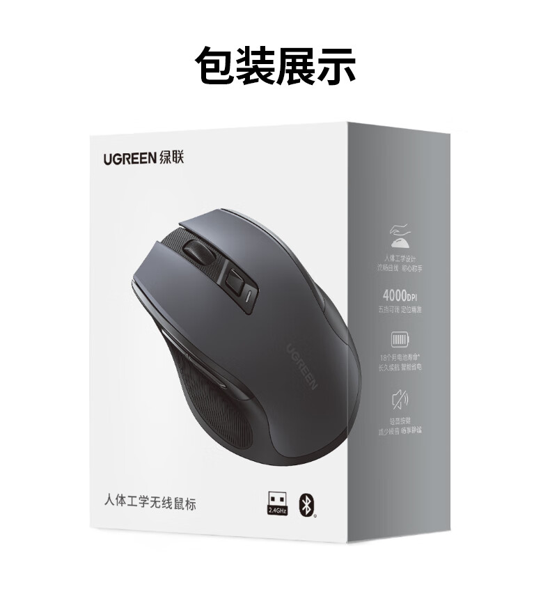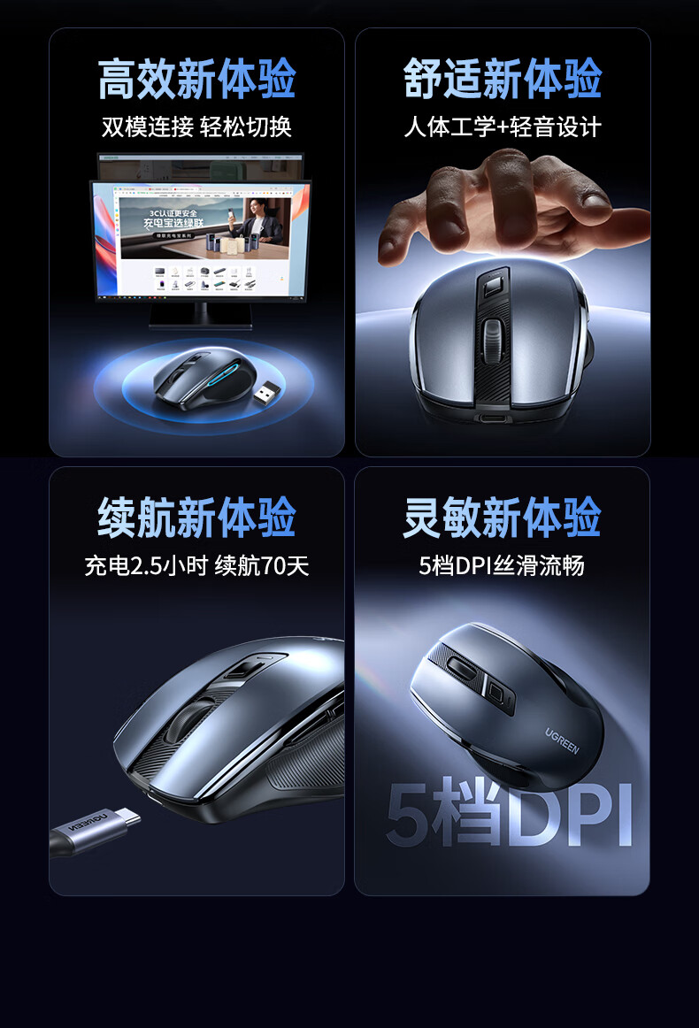 绿联(UGREEN) 可Type-C充电鼠标 55658 137g 黑色(单位:个)