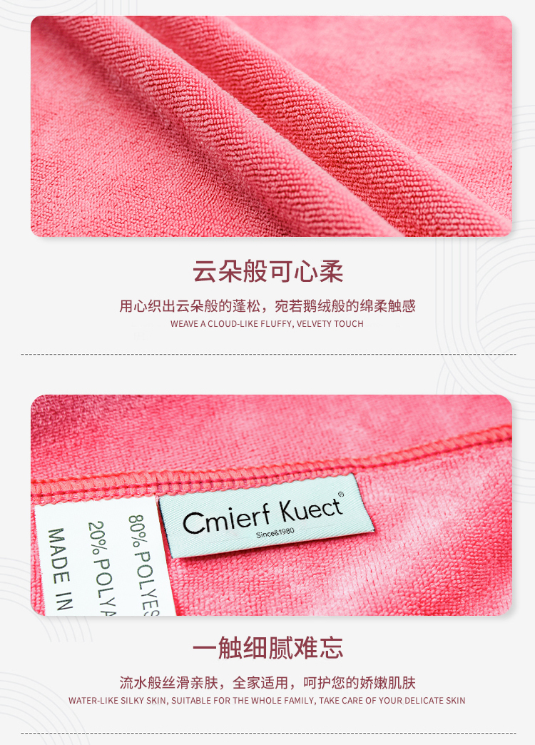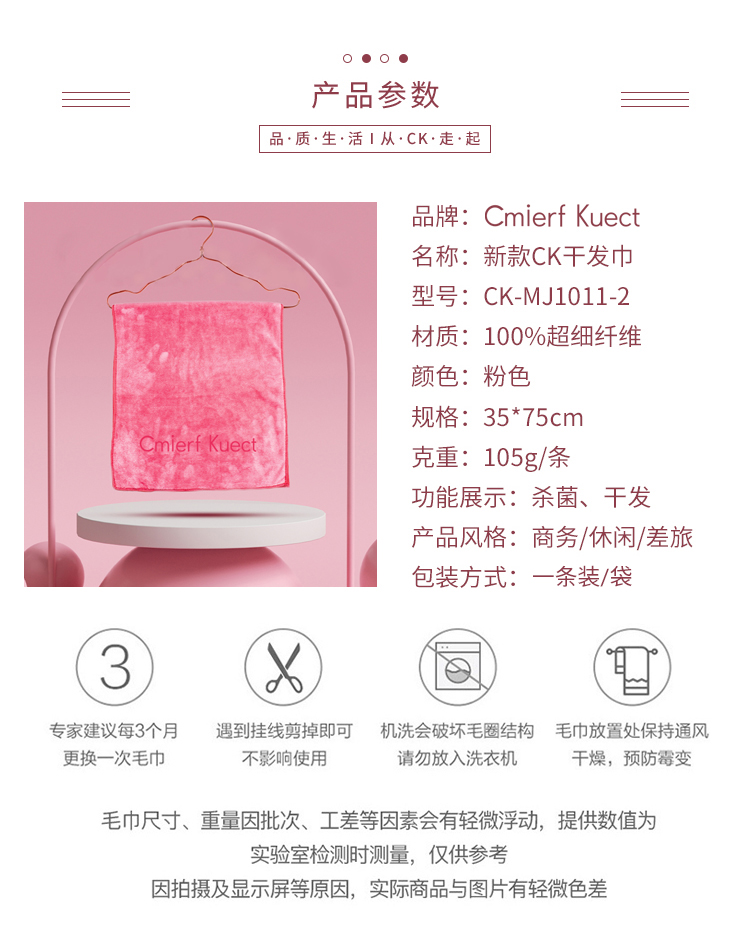 Cmierf Kuect(中国CK)新款CK干发巾CK-MJ1011(单位:条) 粉色