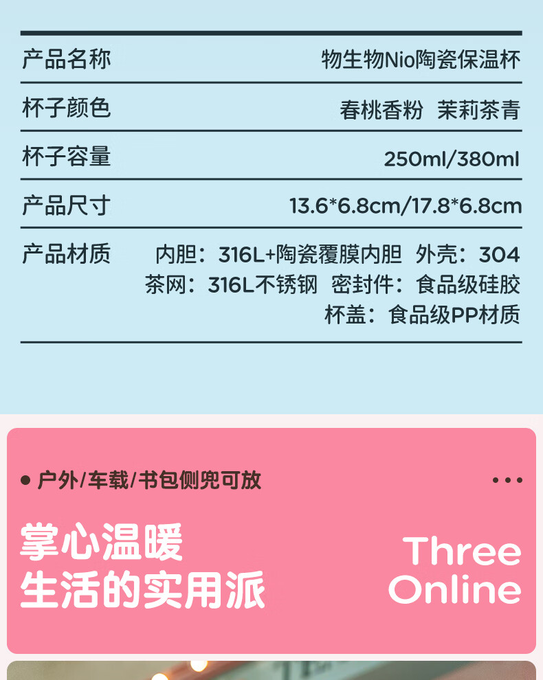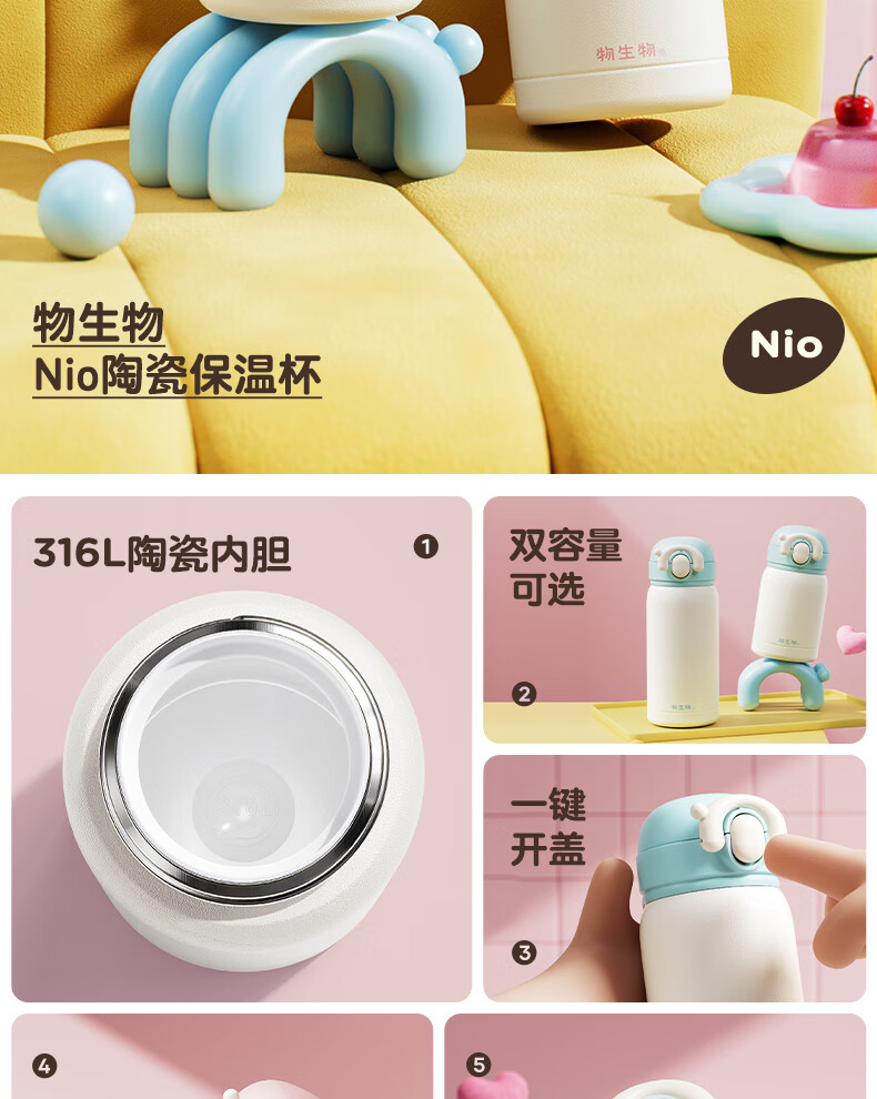物生物(RELEA) Nio陶瓷保温杯 JV012535-0380-LS00 380ML 茉莉茶青(单位:个)