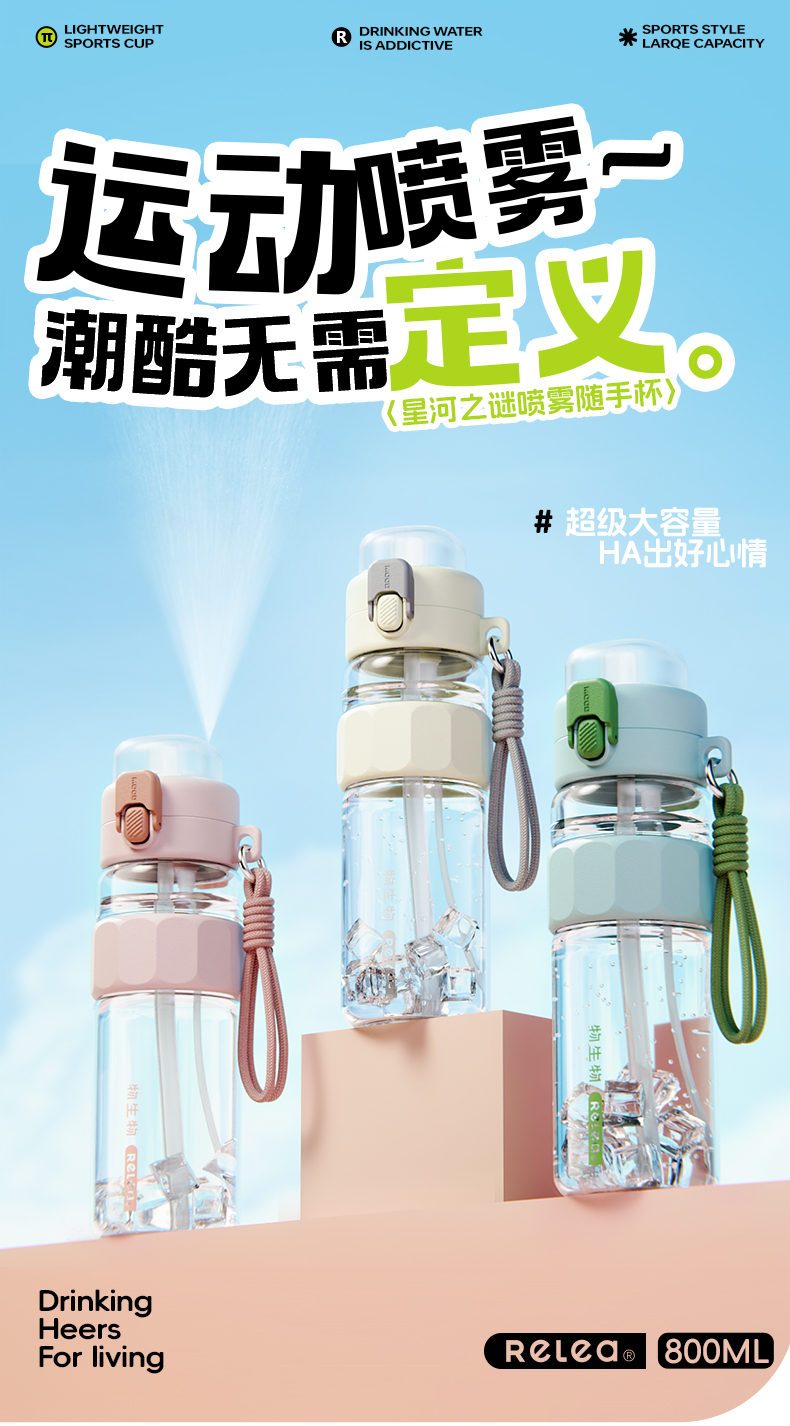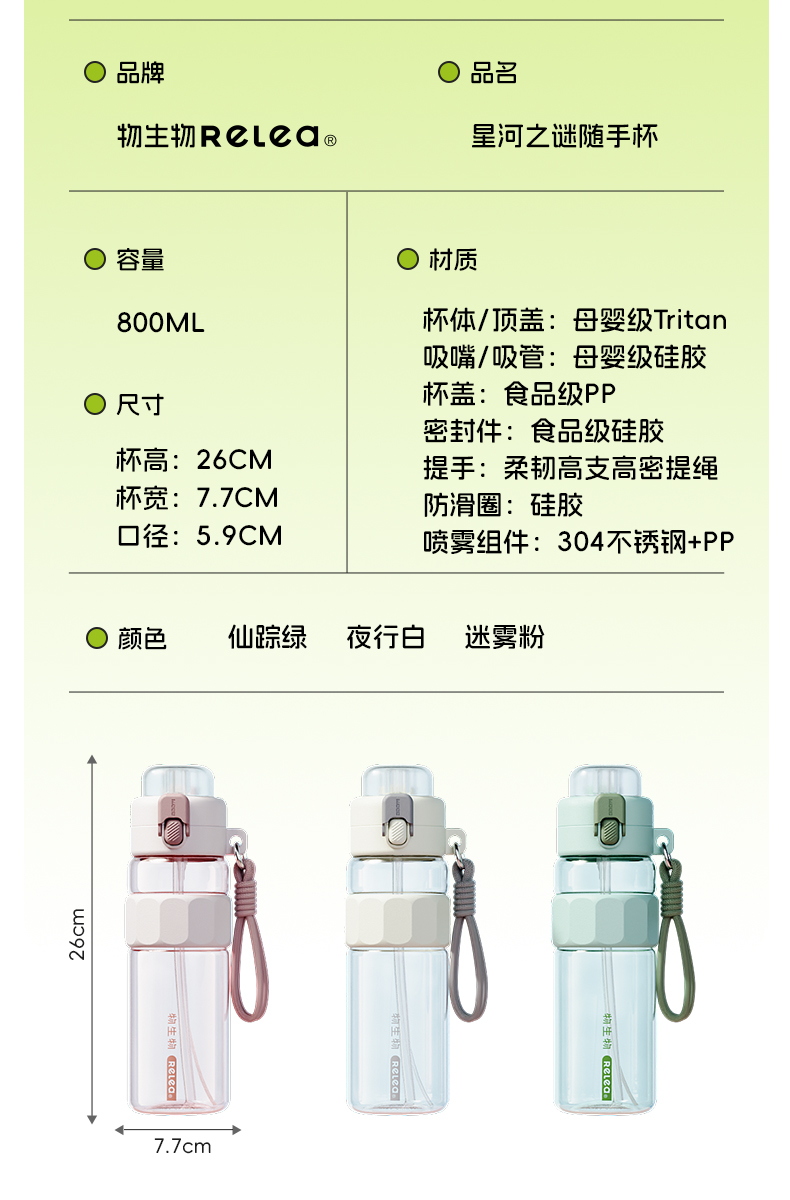 物生物(RELEA) 星河之谜喷雾杯 JV012379-0800-BL00 800ML 夜行白(单位:个)