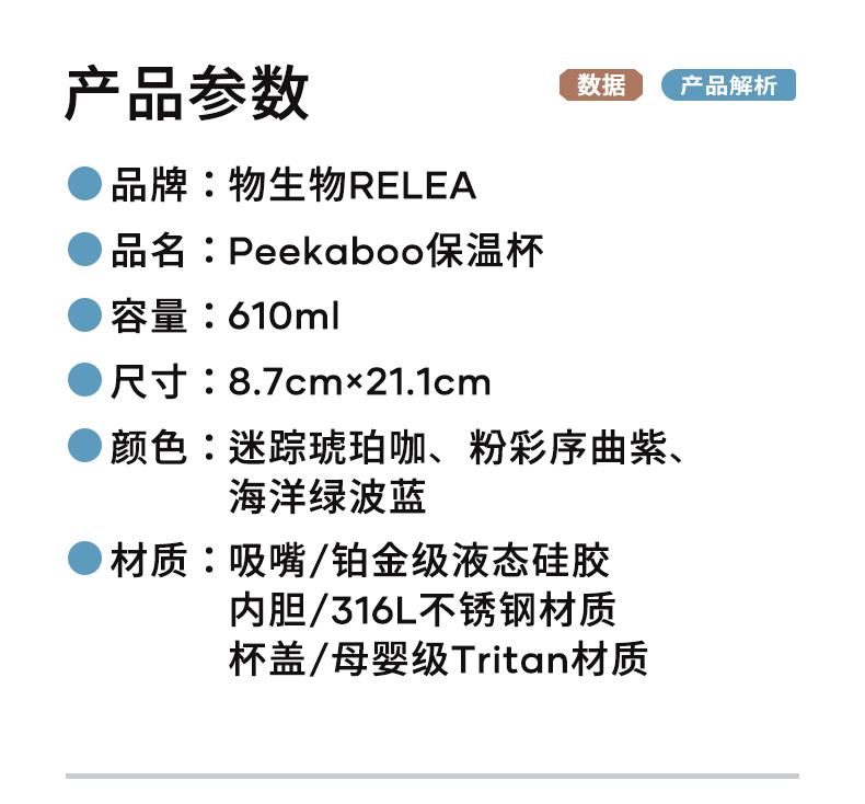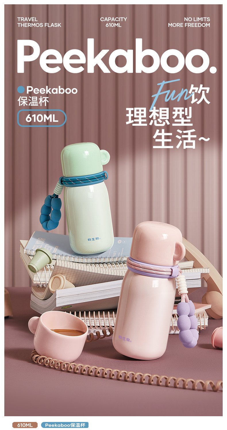 物生物(RELEA) peekaboo保温杯 JV012552-0610-ZS00 610ML 粉彩序曲紫无杯套(单位:个)