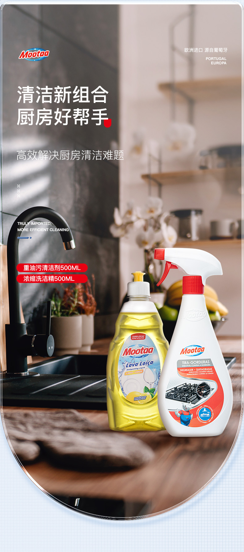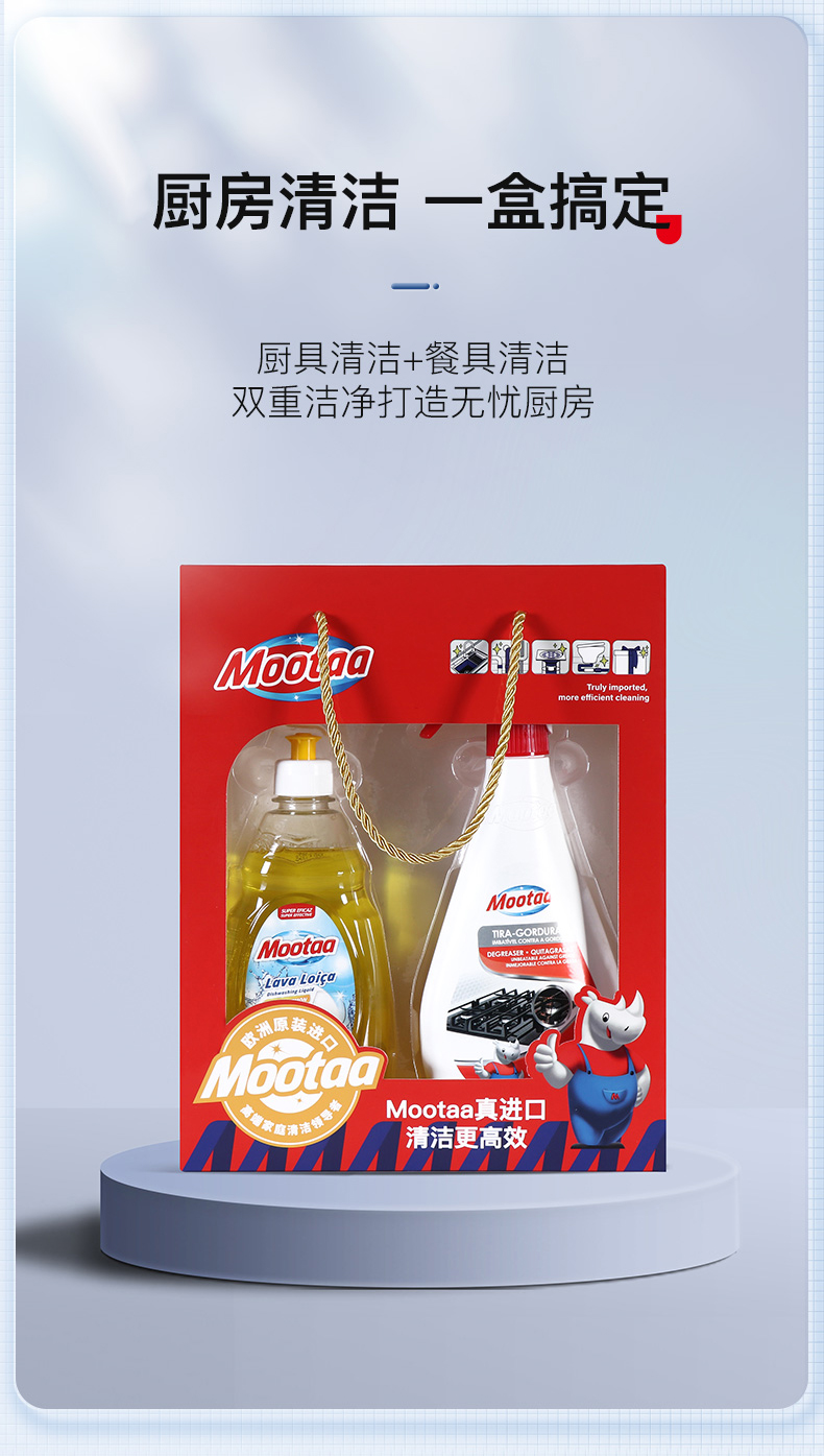 膜太/MOOTAA 清洁剂礼盒二件套 去油污 (重油污500ML+浓缩洗洁精500ML) 混色(单位:组)