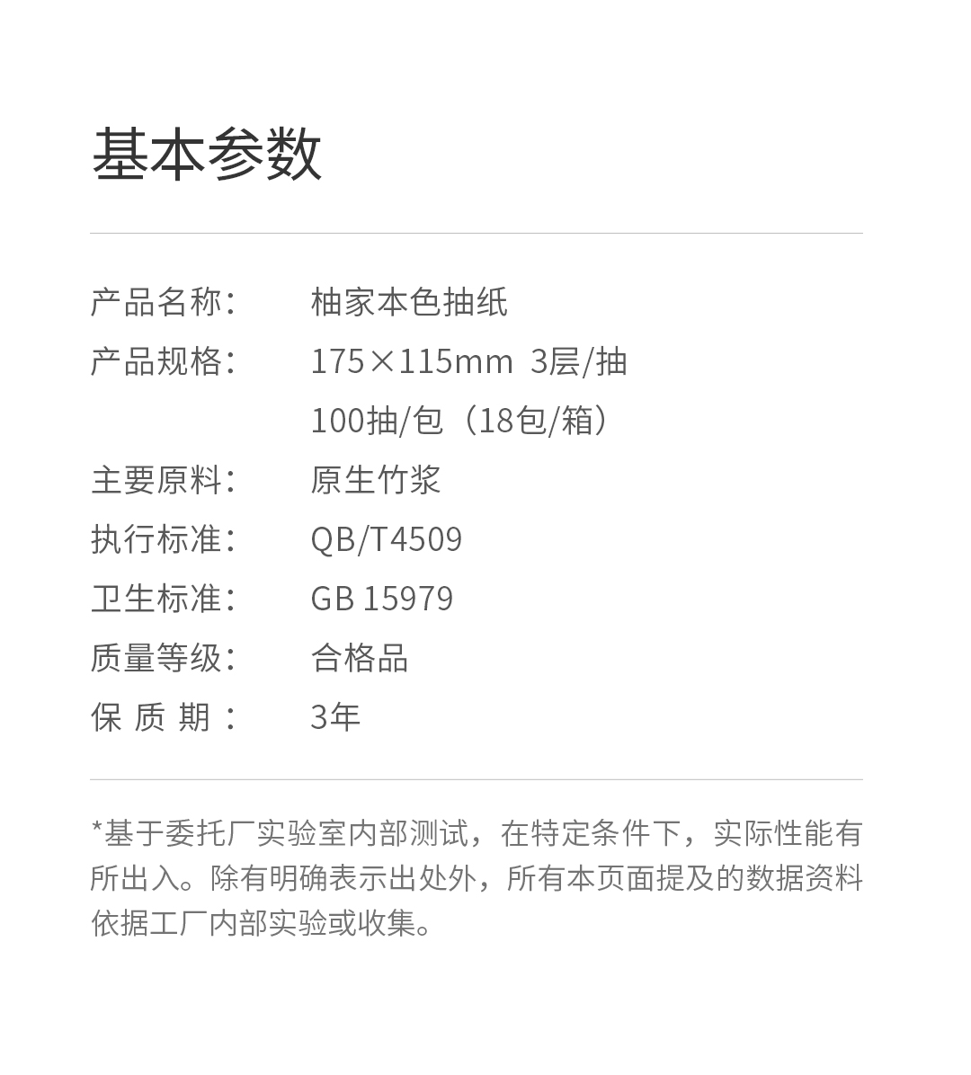 柚家 本色抽纸3层100抽 89734 18包 白色(单位:箱)
