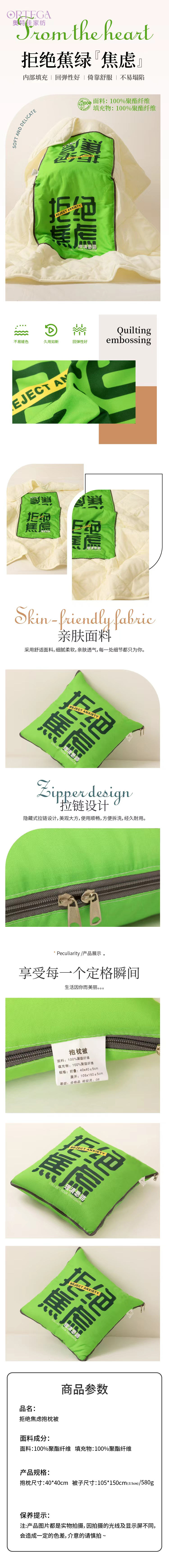 奥特佳 拒绝焦虑抱枕被 JFBZ0002 抱枕:40*40cm;被子:105*150cm±5cm 绿色(单位:个)
