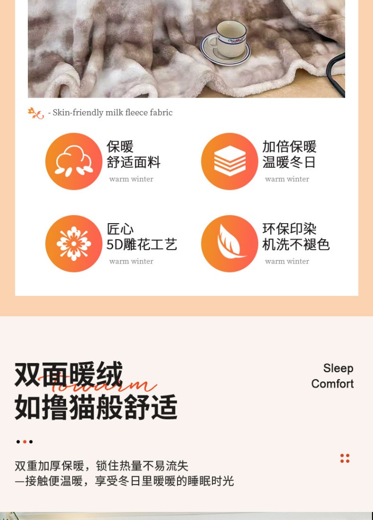 奥特佳 印花泡泡绒毛毯 JF070003 200*230cm/1350g 灰色(单位:条)