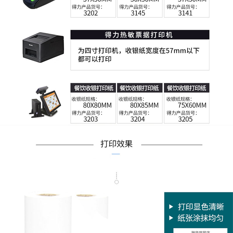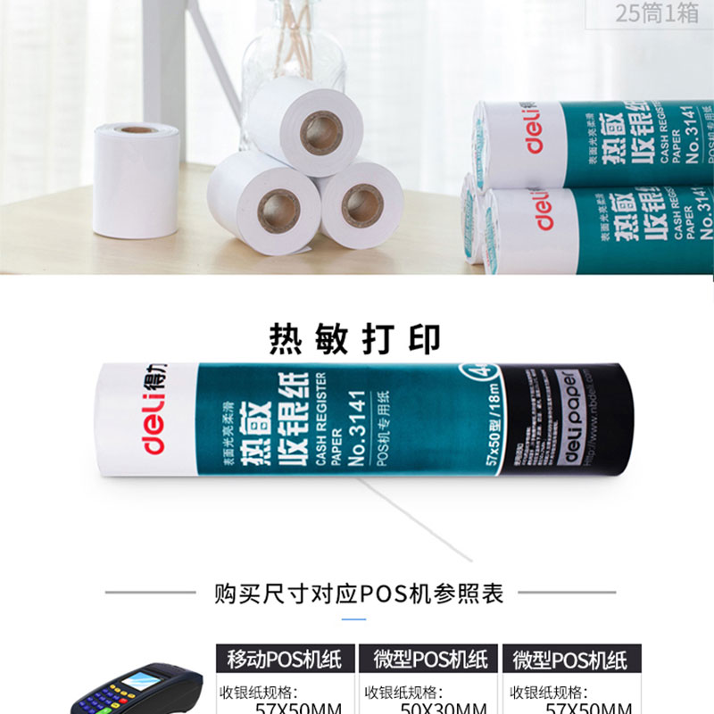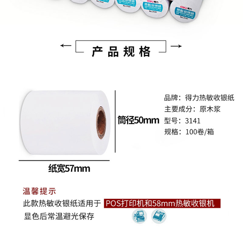 得力(deli) 热敏纸 3143 57mm*56m*1组 白色(单位:组)