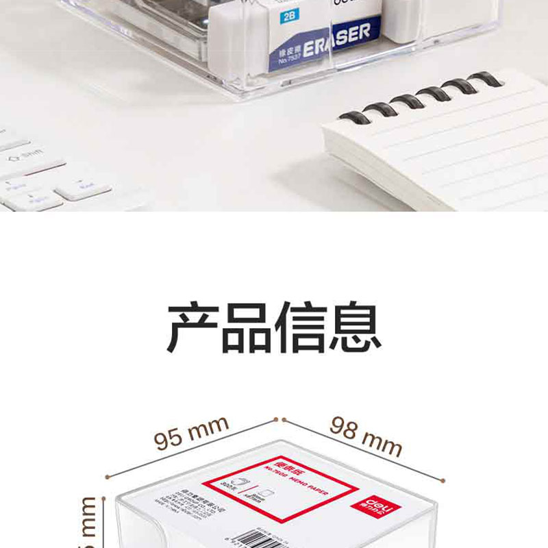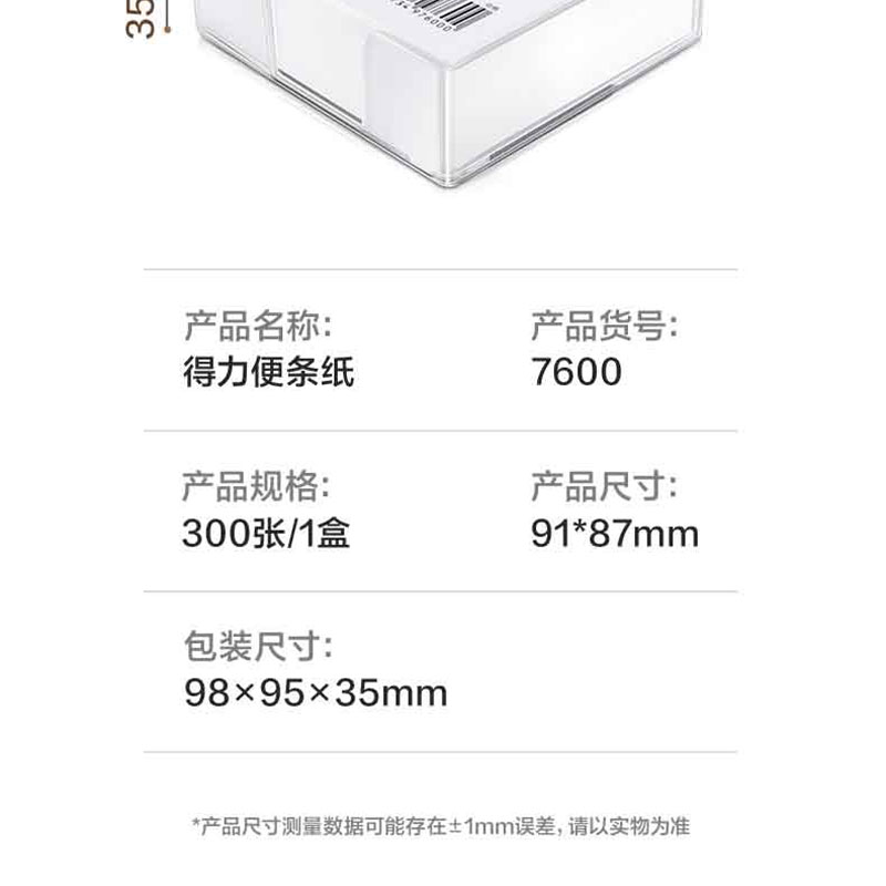 得力(deli) 带盒便签纸 7600 91*87mm*300页 白色(单位:盒)