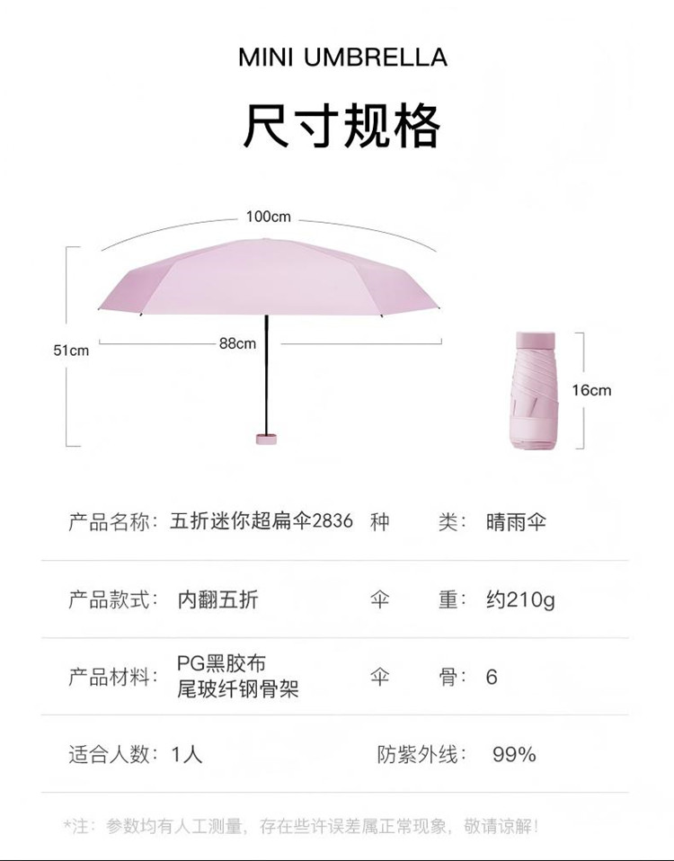红叶(Hong Ye) 五折迷你超扁晴雨伞 2836 50cm*6K 混色(单位:把)