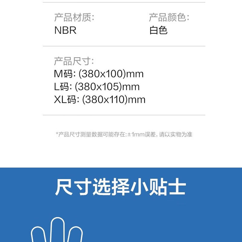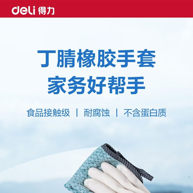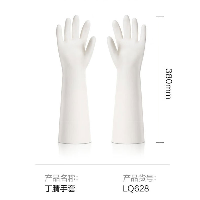 得力(deli) 丁腈手套 LQ628-L 380*105mm 白色(单位:双)