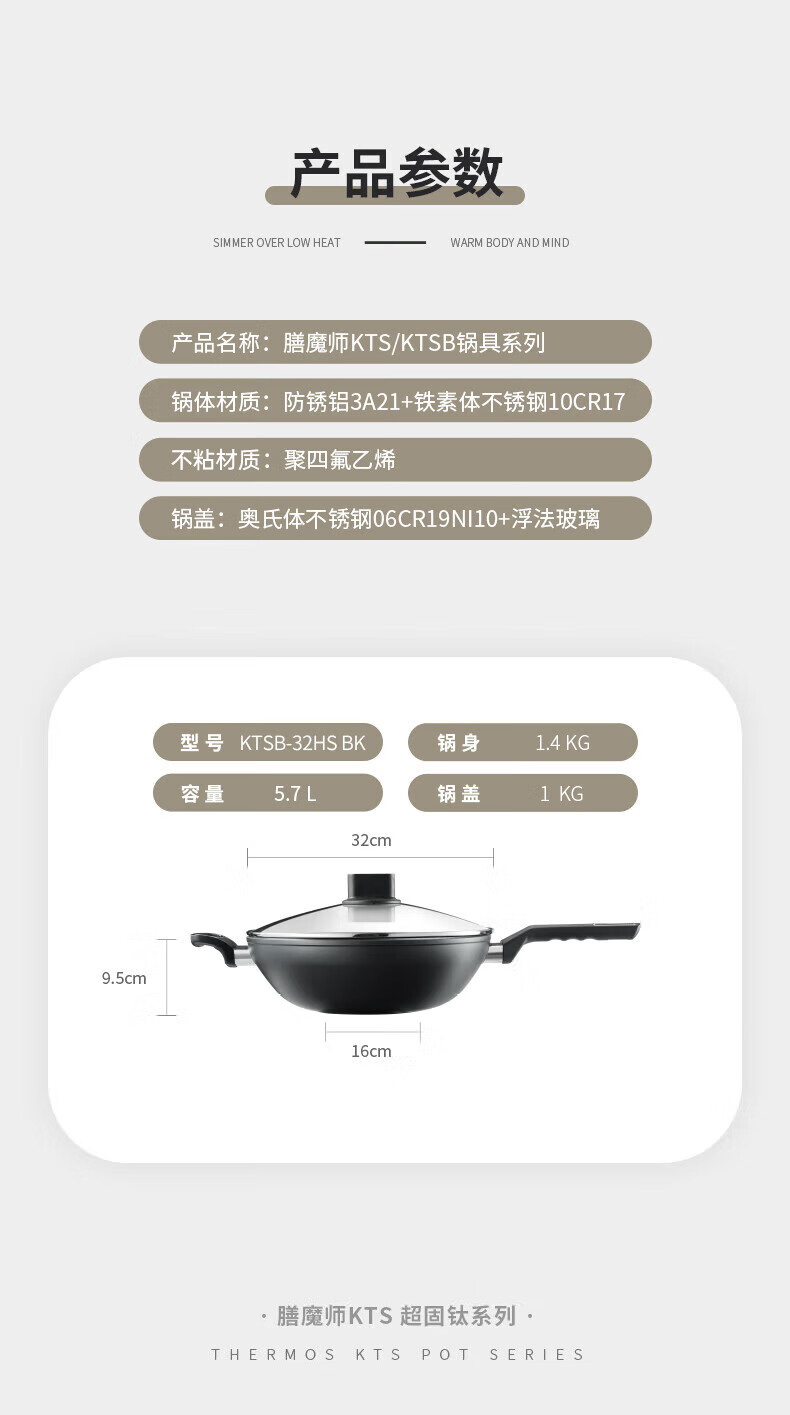 膳魔师(THERMOS) 不粘锅KTS系列 KTSB-32HS BK 32cm 黑色(单位:套)