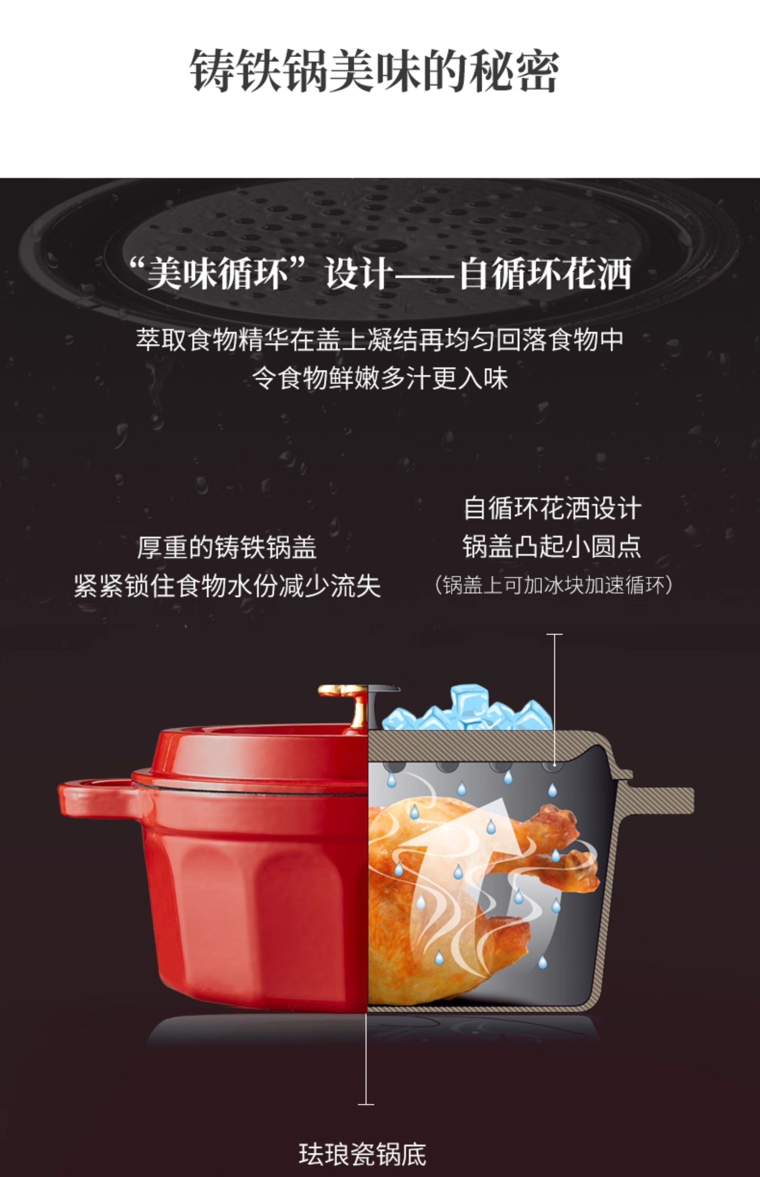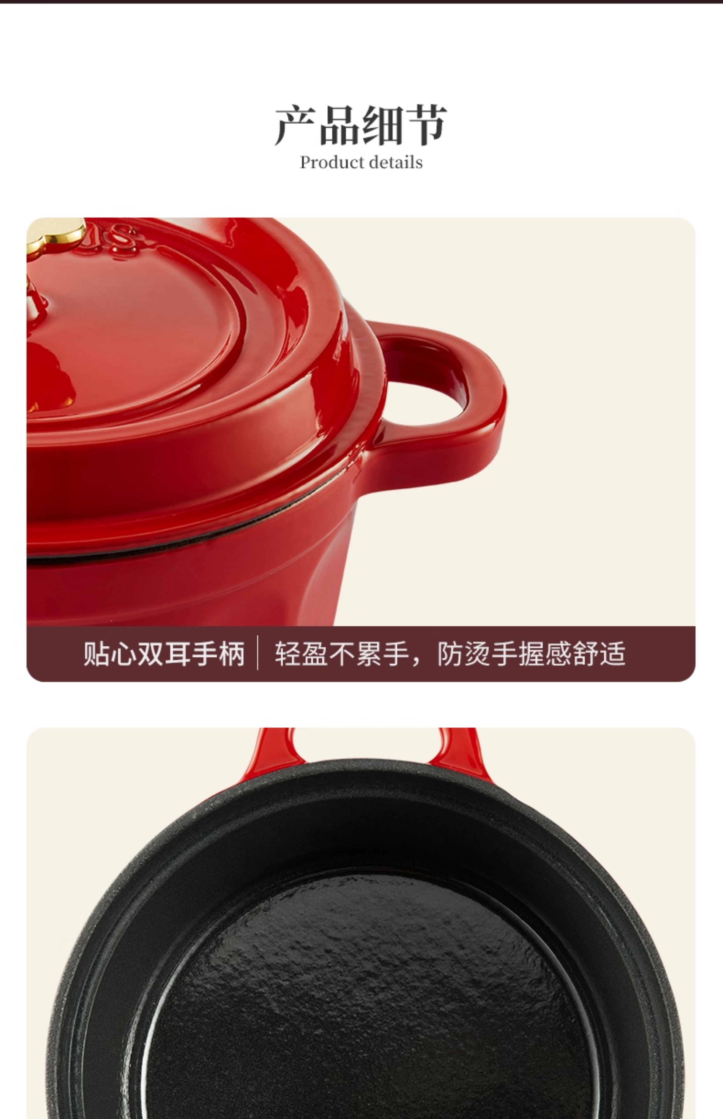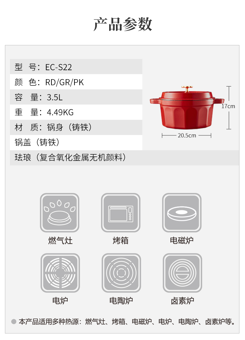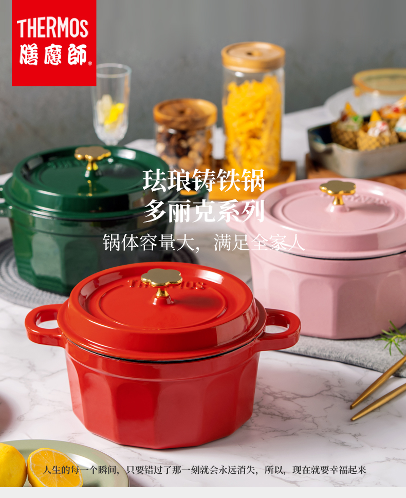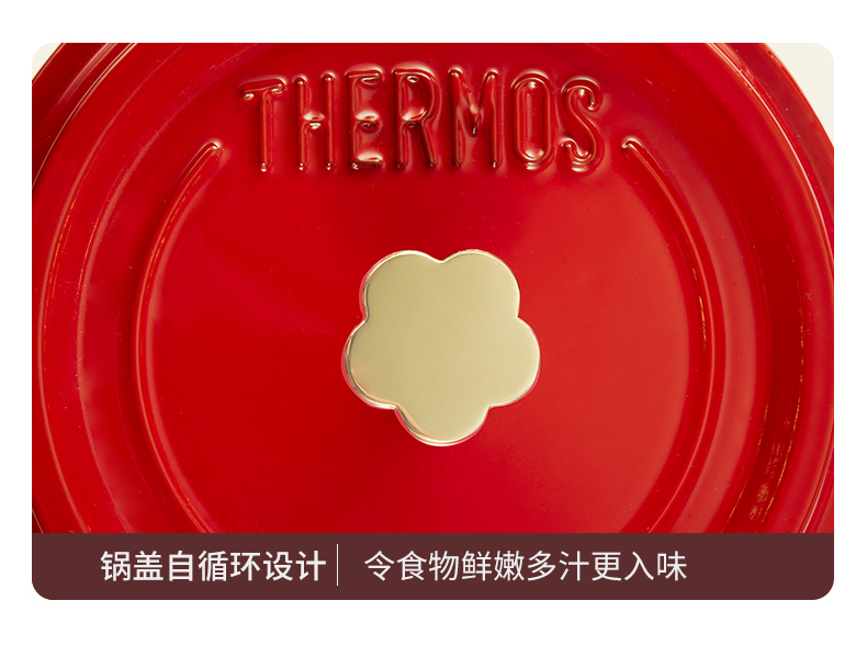 膳魔师(THERMOS) 珐琅铸铁锅 EC-S22 RD 22cm 红色(单位:套)