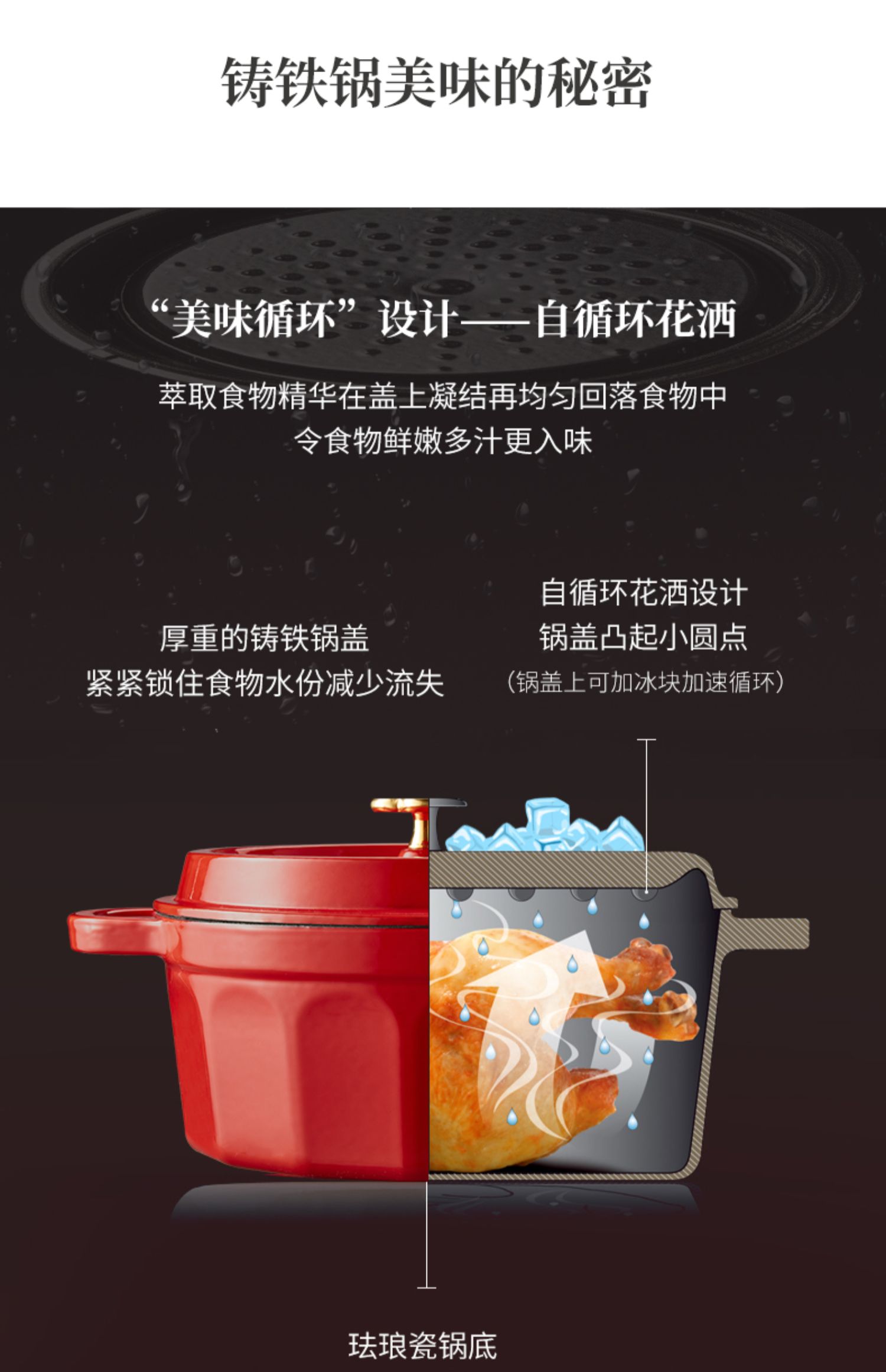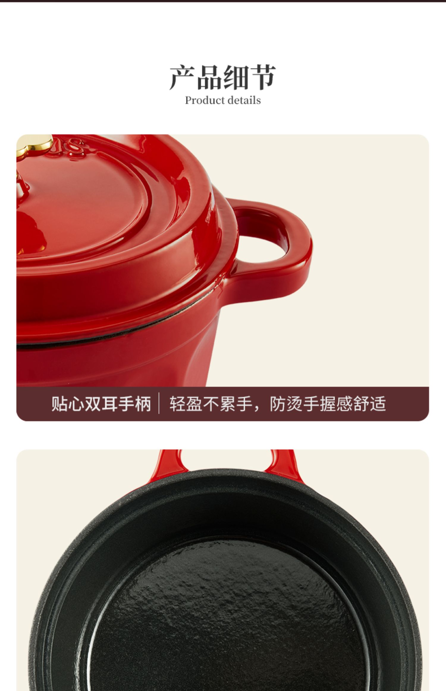 膳魔师(THERMOS) 珐琅铸铁锅 EC-S24 RD 24cm 红色(单位:套)