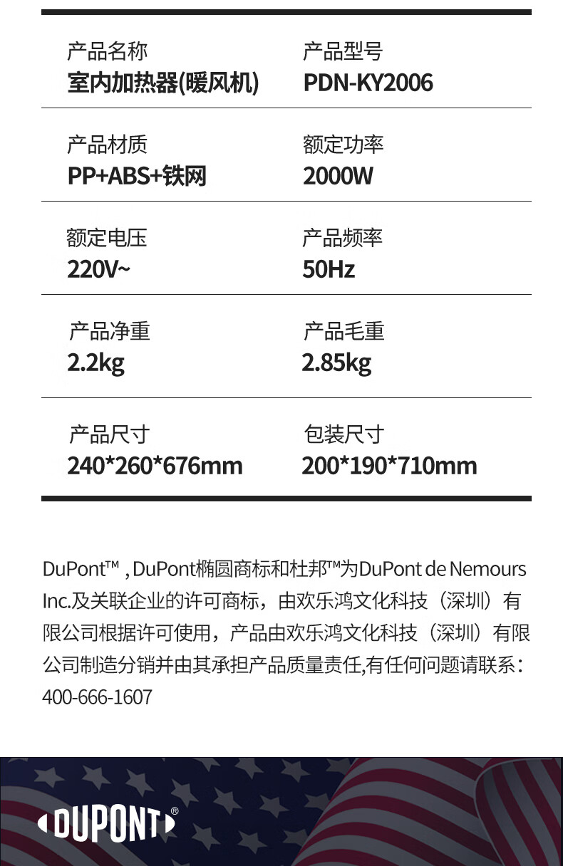 杜邦(DUPONT) 室内加热器(暖风机) PDN-KY2006 240*260*676mm 白色(单位:台)