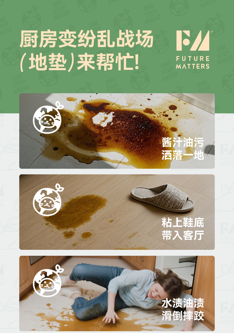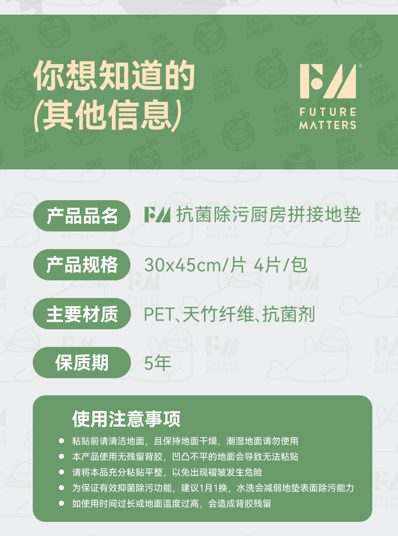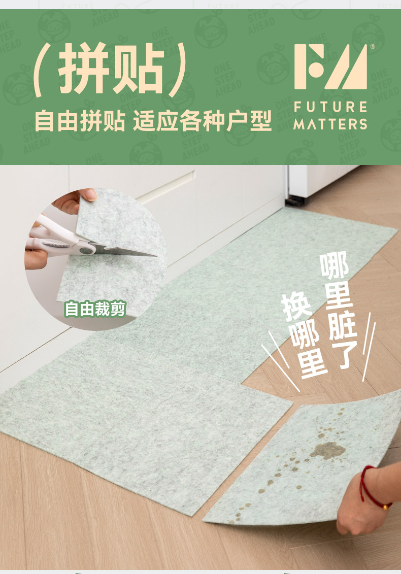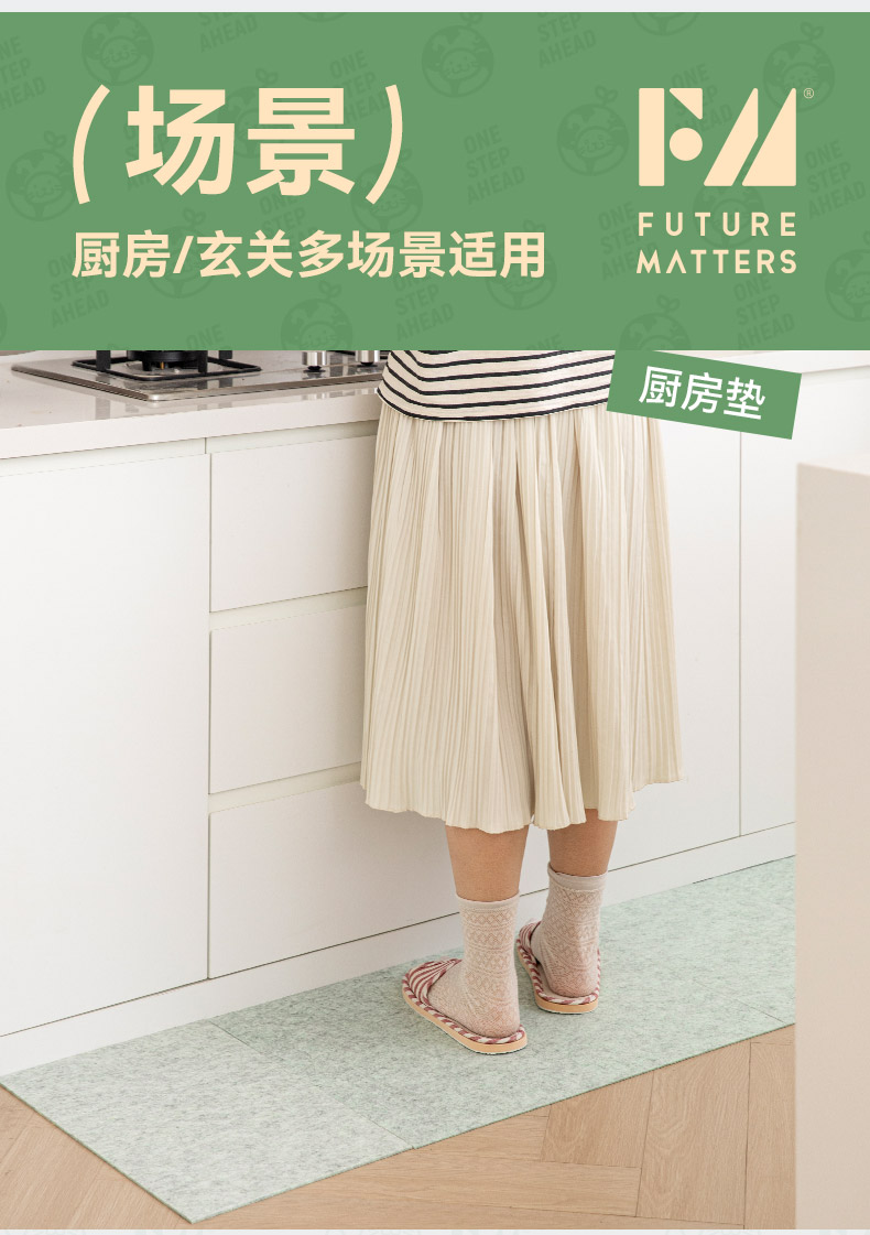 FUTURE MATTERS 防滑除污抗菌拼接地垫 30*45cm/张 4张/份 奶油灰绿(单位:份)