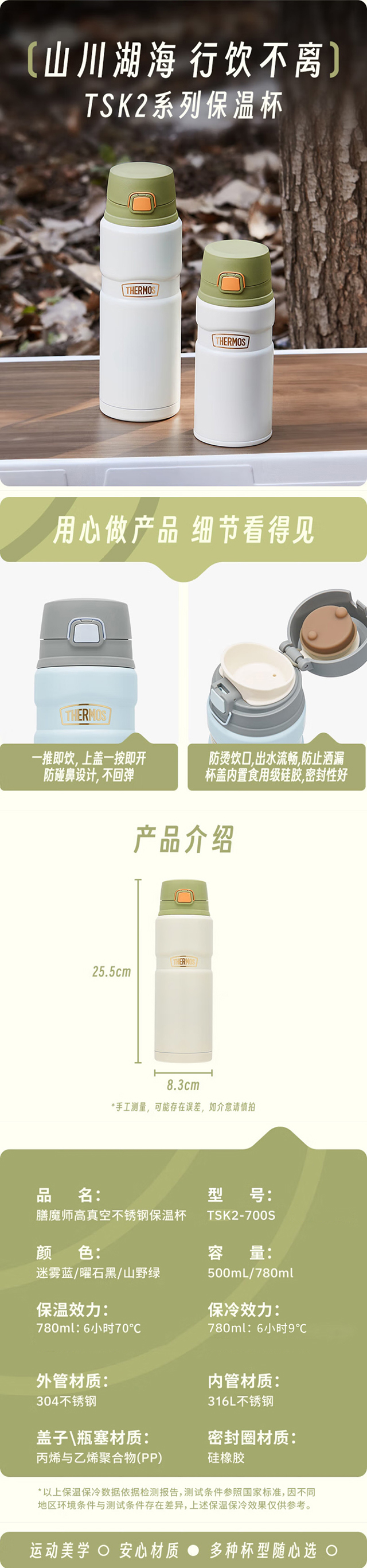 膳魔师(THERMOS) 高真空不锈钢保温杯 TSK2-700S BL 780ml 蓝色(单位:个)