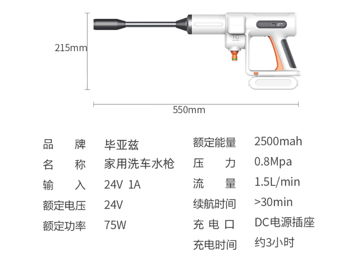 毕亚兹(BIAZE) 无线高压洗车机 MC27 75W 白色(单位:个)