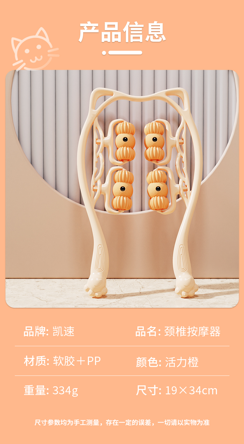 凯速(KANSOON) 颈椎按摩器 EA10 尺寸:19*34cm 炫橙色(单位:个)
