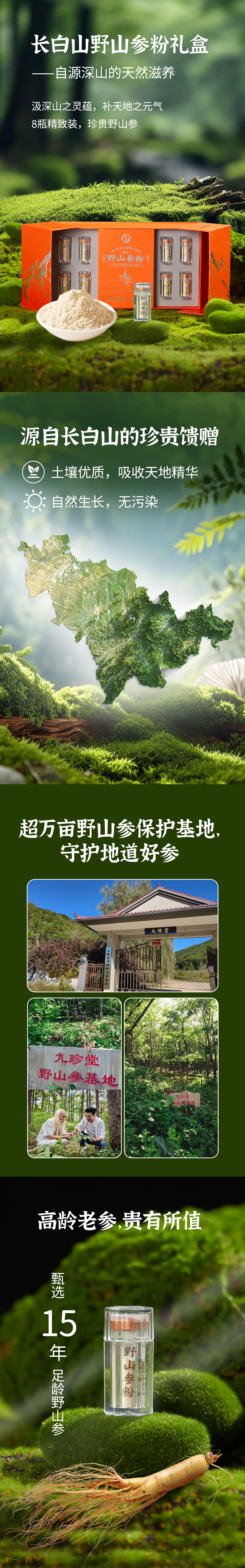 九珍堂 野山参粉 豪华礼盒 1克*8瓶/盒 橙色(单位:盒)