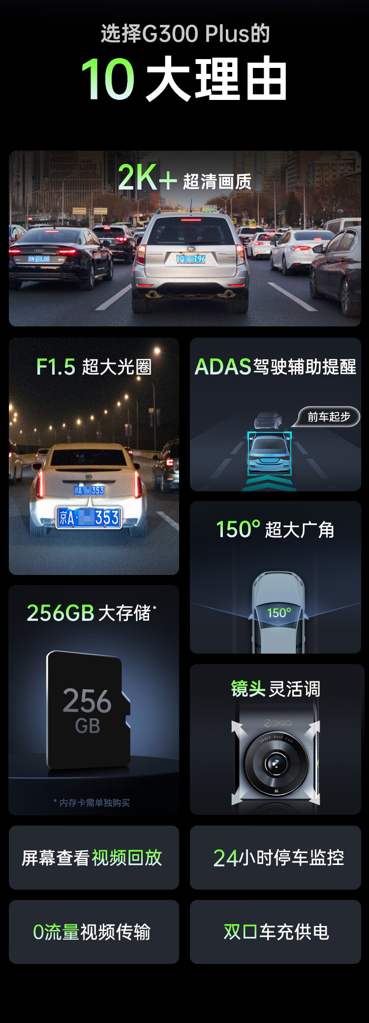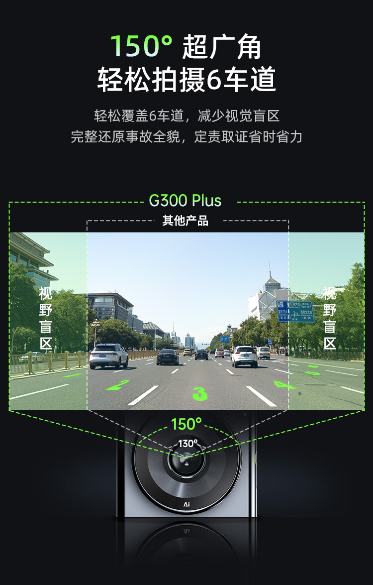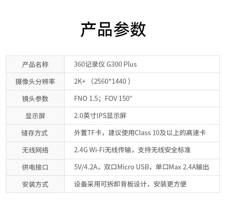 360 行车记录仪超高清夜视 G300PLUS 150°超广角 黑色(单位:台)