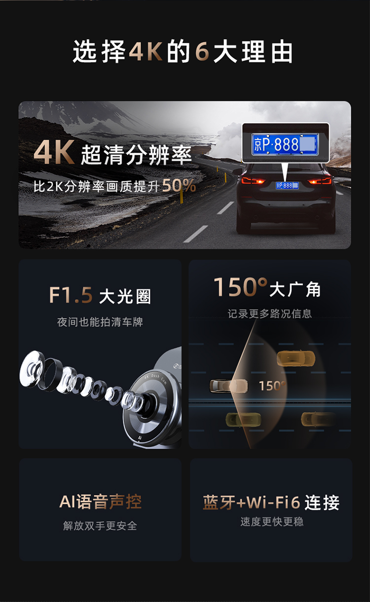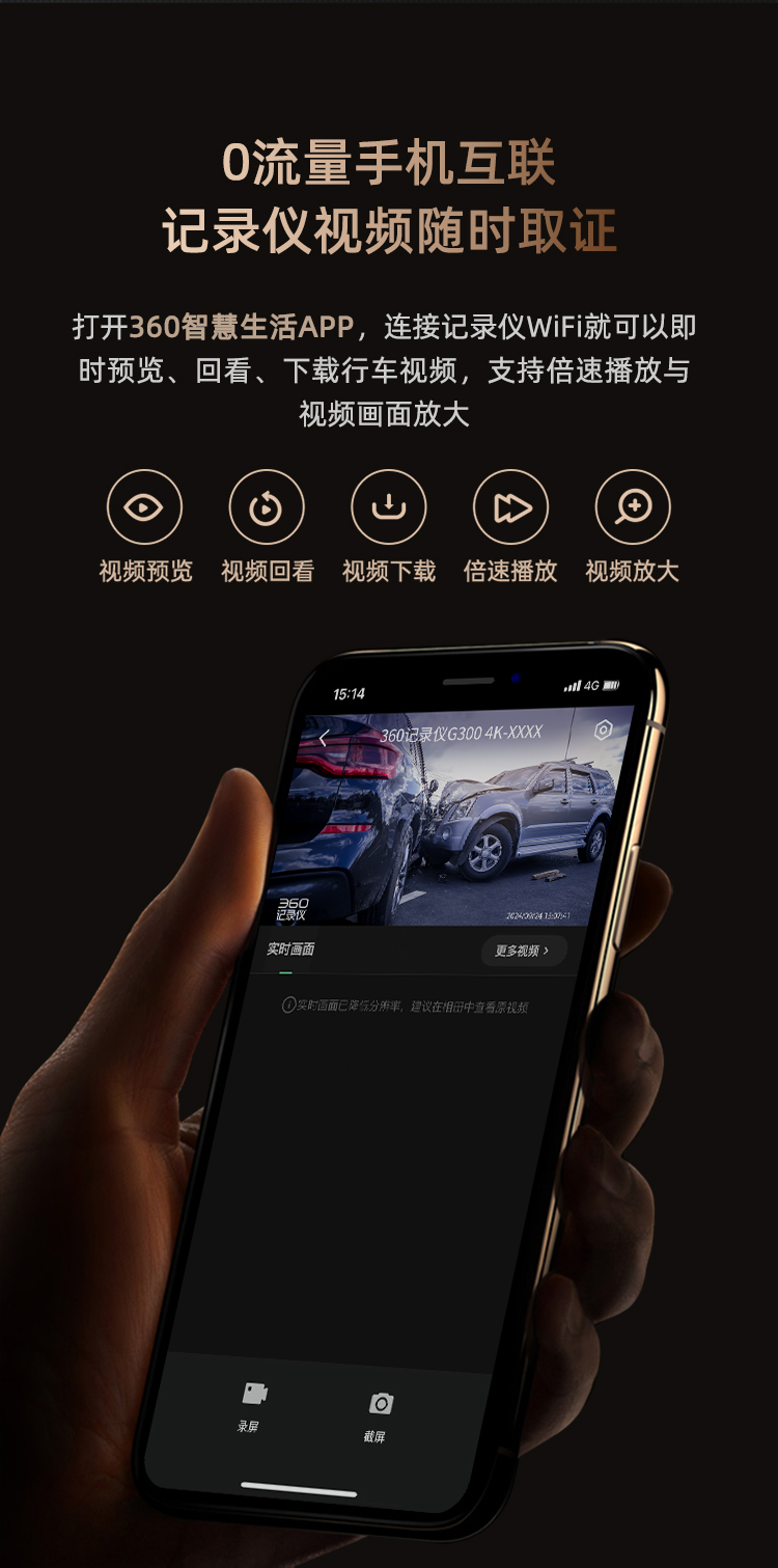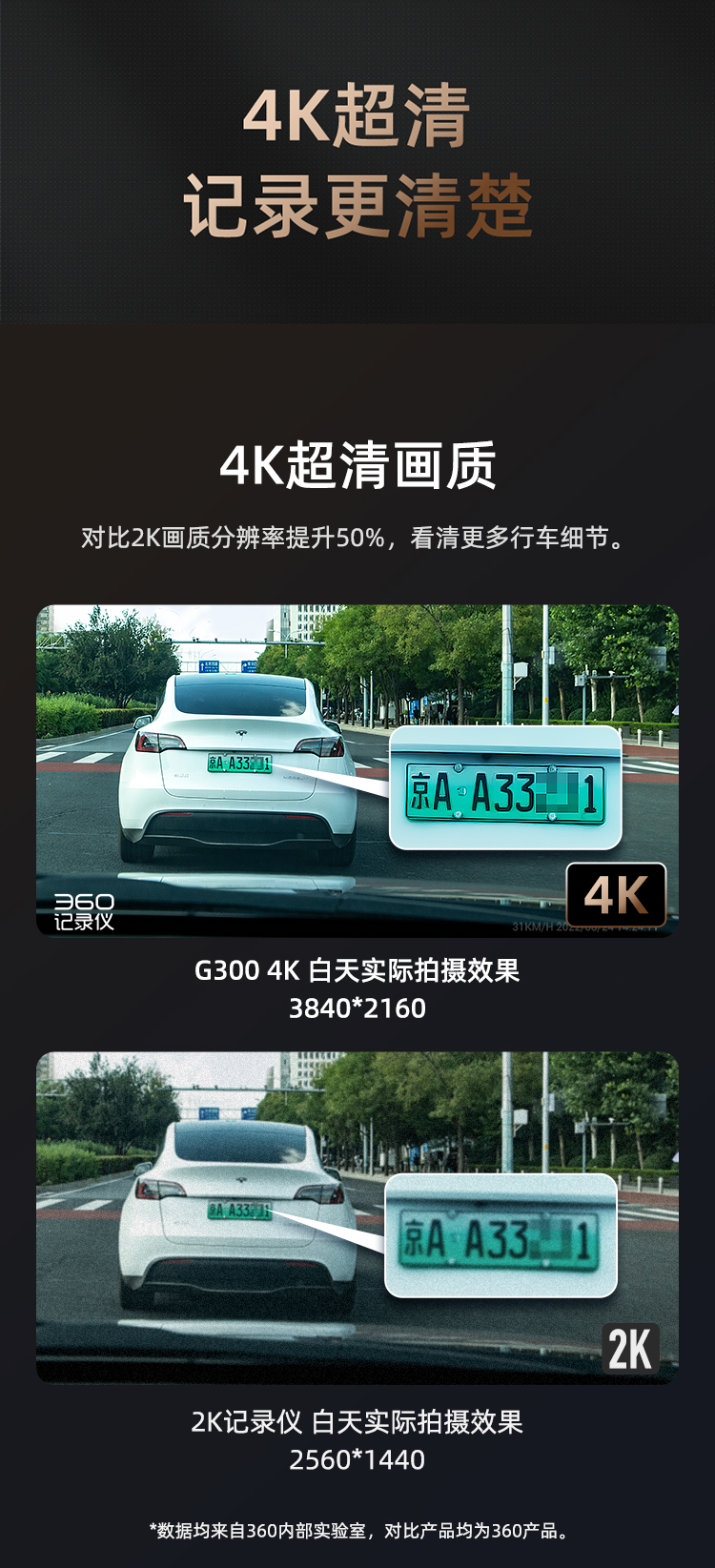 360 AI行车记录仪 G300 4K超高清 黑色(单位:台)