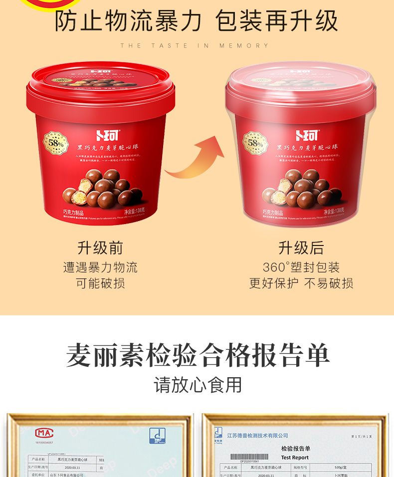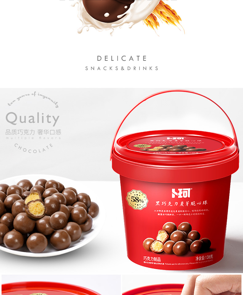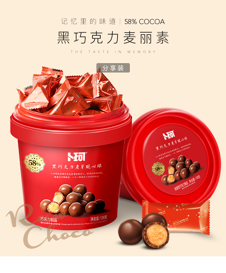 卜珂零点 纯可可脂麦丽素 脆爽夹心 138g*2桶 红色(单位:组)